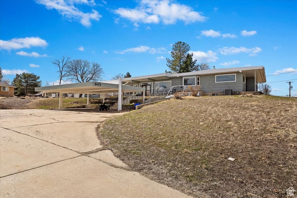 One of a kind Mid-Century home on .4 acres in Washington Terrace. The 3 bedroom 3 bathroom home features an impressive great room with hardwood floors, a fireplace, and large windows that let in tons of natural light. The primary bedroom has it's on ensuite with a sep tub/shower. There is plenty of room for gathering in the 3 separate living spaces and tons of covered parking. This home features lots of storage options in the basement and in the massive detached garage. Enjoy spectacular views of the mountains and valley from the wrap around porch, or the deck out back. Located on a quiet street, minutes from shopping and restaurants on Riverdale Road.