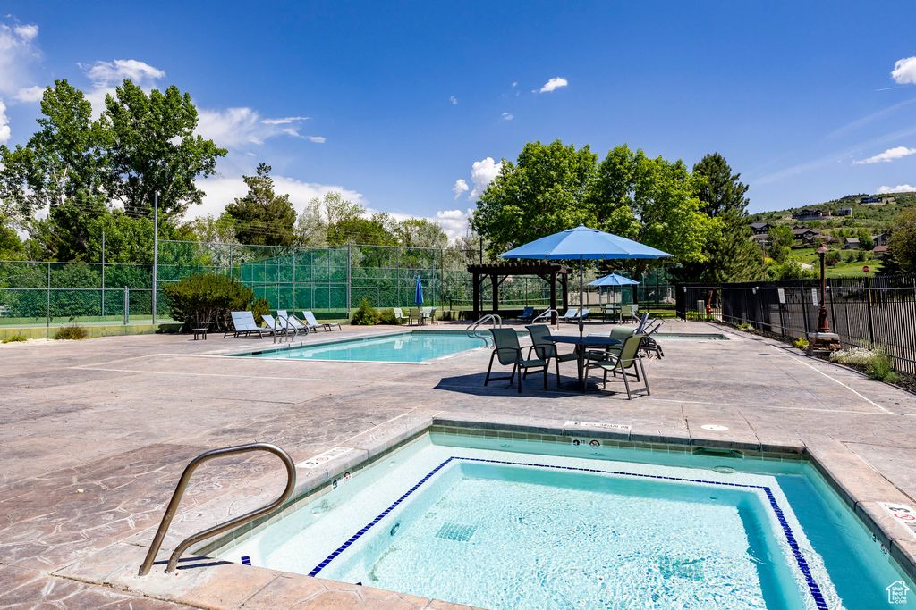 Ideally located just minutes from the renowned slopes of Snowbasin Resort and Pineview Reservoir, this completely renovated and meticulously maintained townhome offers a rare blend of year-round outdoor access and elevated interior comfort. Thoughtfully redesigned with modern finishes, the home includes three bedrooms and two and a half bathrooms across a light-filled, open-concept layout. A striking two-story living area anchored by a gas fireplace and floor-to-ceiling windows is flooded with natural light. The kitchen is a standout, featuring modern custom cabinetry, a waterfall-edge quartzite stone island with bar seating, an induction/convection, and expansive pantry storage-an entertainer's dream. The adjacent deck extends the living space outdoors, inviting you to take in the fresh mountain air. Upstairs, the vaulted primary suite offers serenity and privacy, complete with a spa-inspired bathroom featuring a Euro-glass shower, soaking tub, and dual quartzite stone vanities. A spacious walk-in closet completes the suite. The lower-level walkout includes two additional above-grade bedrooms, a full bath, and a dedicated laundry room. A one-car attached garage provides space for recreational gear and storage. Nightly rentals are permitted, enhancing this home's potential as both a primary residence or investment property.