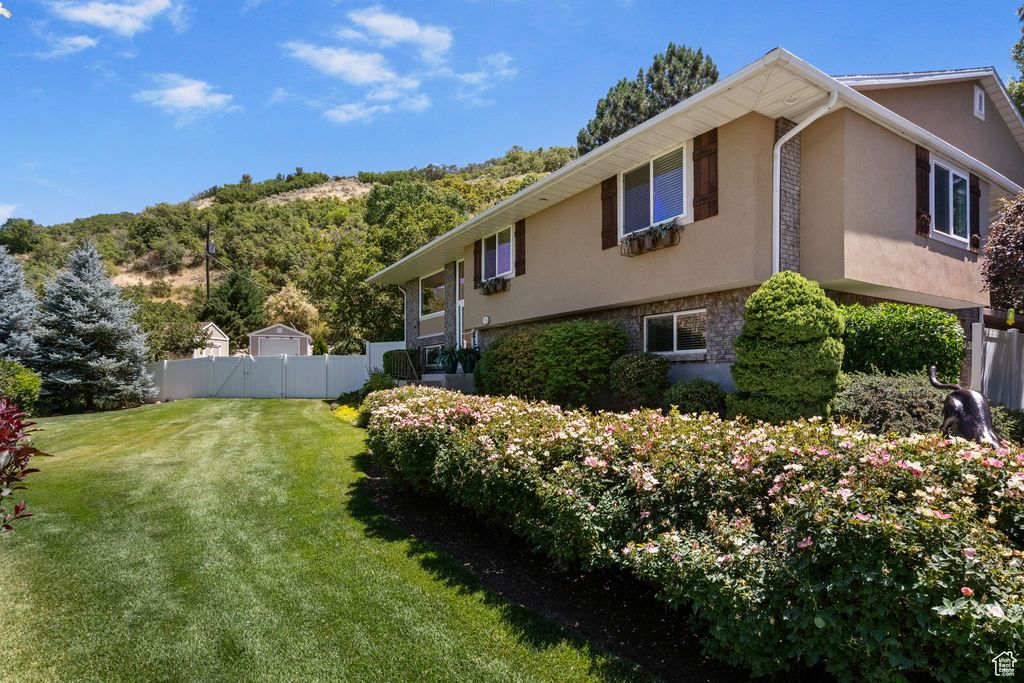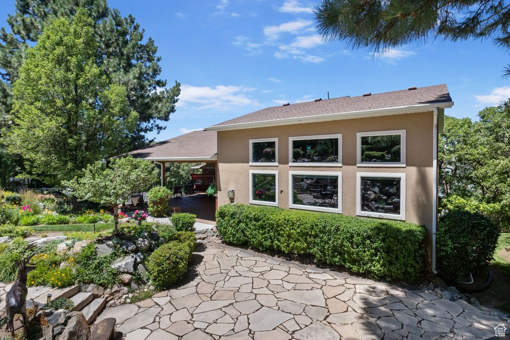 This home Has an Immaculate Secluded Yard both Front & Back. Dreamy Lush Landscaping, Terraced Yard with Covered Deck and Stone Patio with Waterfall, Located on a secluded dead end street just off 89 and 84. It has 2 Sheds for Storage, Chicken Coop and Loads of Yard Space. Updates in the Home are just as Stunning. Formal Living Room off Entrance with Stone Fireplace and Recessed Lighting. A Chef's Kitchen with Incredible Craftsmanship. Granite Counters, Top of the Line Gas Stovetop, Wall Ovens, Custom Range Hood , Large Central Island and a Walk in Pantry. Open to the Dramatic Family Room with Wall of Windows looking up the Mountain Side, 2nd Gas Fireplace and Access to the Expansive Covered Back Deck Overlooking the Sprawling Yard. NEW Flooring & Paint Throughout. Tranquil Primary Bedroom with Luxurious Ensuite Bathroom with Soaking Tub and Walk in Closet. 2nd Main Level Bedroom/Office with Updated Hall Bathroom. Main Level Laundry with Sink. Basement is Fully Finished with Separate Exterior Entrance, Large Family Room and Separate Rec Room with 3rd Fireplace. 2 Bedrooms and Lovely Bathroom with Dual Sink Vanity. 2 Parcels are Included in Purchase: 13-282-0006 is .32 Acres both parcels total 2.55 acres. Horse Property. Secondary Water with Weber Basin. NEW Gutters with Leaf Guards, NEW Cement Walkways. Close to both Hwy 89 and Weber Canyon. Short Drive to Snowbasin Ski Resort, Multiple Reservoirs up Weber Canyon and Hwy 89 for Commuting and Access to I-15. Square footage figures are provided as a courtesy estimate only. Buyer is advised to obtain an independent measurement.