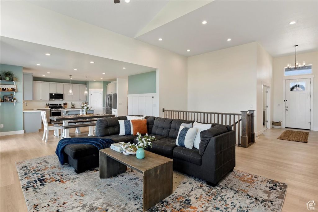 Nestled on a generous 1.28-acre plot, this stunning fully finished rambler epitomizes luxurious country living. Home is within walking distance to the new West Field High School. Step into an inviting space where the open floor plan seamlessly blends with soaring vaulted ceilings, creating an atmosphere of expansive comfort and elegance. Wake up to breathtaking vistas of the majestic mountains, offering unobstructed views perfect for witnessing the beauty of sunrise each morning. As you enter through the front door, you're greeted by a sense of grandeur and warmth that defines every corner of this home. Entertain effortlessly on the fully covered back deck, ideal for gatherings and al fresco dining against a backdrop of nature's finest. The newly finished walkout basement (completed in 2023) adds another dimension of living space, providing versatility and modern convenience. The primary suite is a sanctuary of style and serenity, while two kitchens and two laundry rooms offer unparalleled functionality. An apartment or mother-in-law suite with a walkout to the backyard ensures privacy and independence for extended family or guests. Stay active and healthy with the convenience of a home gym, and cultivate productivity in the spacious office area. Ample storage including a large food storage and extra storage in the utility room caters to organizational needs with ease. Parking is a breeze with the extra deep and tall 4-car garage, while the fully fenced yard with a garden area and pasture invites outdoor enjoyment and relaxation. Discover a bountiful orchard featuring apple, nectarine, peach, apricot, cherry, pear, and Asian pear trees, along with raspberry, blackberry, and elderberry bushes, promising seasonal delights right at your doorstep. Welcome to your dream home, where every detail is meticulously crafted to elevate your lifestyle and create lasting memories in a picturesque setting.