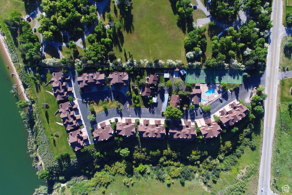 Buy now and let the rental season work for you! With demand on the rise for mountain escapes, this turnkey condo offers both personal enjoyment and immediate income opportunity. Start earning as guests book their stays for the busy season ahead. Situated in a gated community with direct access to Pineview Reservoir, it's the closest rental lodging to Snowbasin and is zoned for short-term rentals, making it ideal as a full-time residence, vacation home, or income-generating investment. The main level features an open-concept living area with a warm gas fireplace and sliding glass doors that open to a private deck with a hot tub where you can enjoy views of Snowbasin ski resort and stunning sunsets. The cozy main level also includes one bedroom, a full bathroom, and a full-size stackable washer and dryer adding everyday convenience and functionality. Upstairs, the spacious primary suite with vaulted ceilings provides a quiet retreat with its own ensuite bath. Additional highlights include a BBQ grill, covered carport, and a private owner lock-out with secure storage. Community amenities include a pool, hot tub, clubhouse, tennis courts, and beautifully maintained grounds. With paddleboarding, kayaking, boating, skiing, hiking, and biking just minutes away, this rare lakefront offering delivers true four-season recreation in one of Utah's most desirable mountain destinations. All property information, boundaries and documents to be verified by buyer.