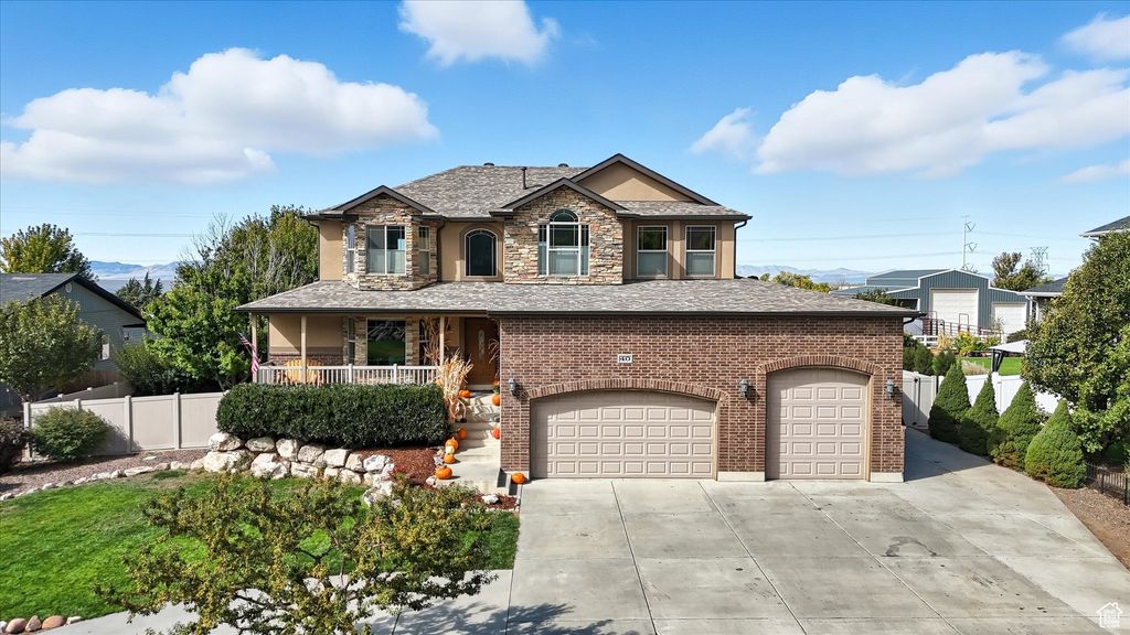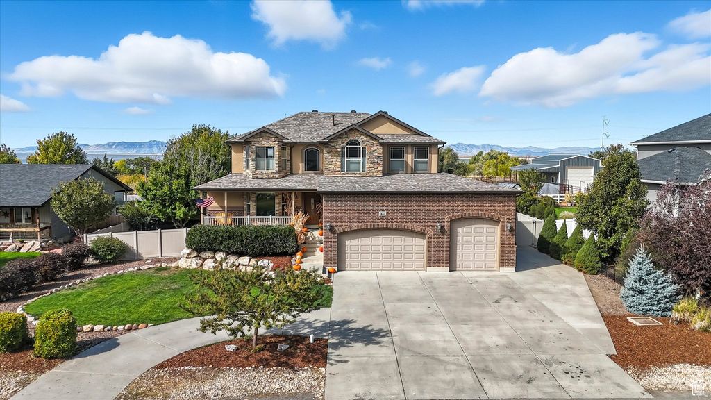Spectacular 2-Story Custom Home on Horse Property in Willard! Only minutes from shopping yet tucked away in a serene setting, this home offers peaceful, unobstructed sunset views from the covered Trex deck. The outdoor living space is designed for entertaining with a private hot-tub-ready patio, award winning built-in custom sunken firepit/grill, pristine landscaping, outbuildings (one with power), and a shed. The fully fenced backyard with gate access is a gardener's or homesteaders dream, featuring sweet cherries, apples, plumcots, concord and table grapes, raspberries, strawberries, and asparagus. Inside, you'll find soaring exposed wood beams in the kitchen, an oversized island perfect for gatherings, arched doorway shelving, and a ventless fireplace in the great room for extra warmth. The spacious master suite includes a separate tub/shower, while a second en-suite bedroom offers privacy for guests. The daylight walk-out basement boasts a full kitchen (formerly wet bar), large family/game room, theater/4th bedroom, and plenty of space to host or use as a mother-in-law apartment. This home has been thoughtfully updated with a new roof (2021), new water heater (2024), brand-new A/C (Sept 2025), new flooring and carpet, new lighting, and a full interior paint (2020). Gas lines were extended for both kitchens (with possible external generator hookup), and the garage has been built out with decking and storage to maximize parking. With an oversized 4-car garage, RV parking, and endless storage, this property truly blends comfort, functionality, and beauty.