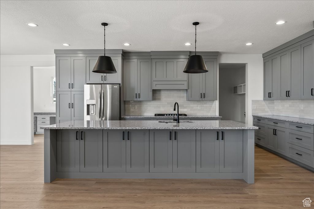 Highly sought after Harvest Ridge neighborhood* MAIN FLOOR LIVING with a Fully Finished BASEMENT APARTMENT* Open Floor Plan with Custom Finished Throughout* MASTER BEDROOM SUITE with large private bathroom and walk-in closet* LOTS OF STORAGE with an OVERSIZED 3 CAR GARAGE* Lots of bonuses and custom additions including a large HIDDEN PANTRY, laundry in the Master closet, "Costco Door" in the garage, double ovens, and gas cooktop* There is additional rooms space with a study or craft area and the mud room features extra fridge or freezer space for convenience. APPOINTMENT IS REQUIRED.
