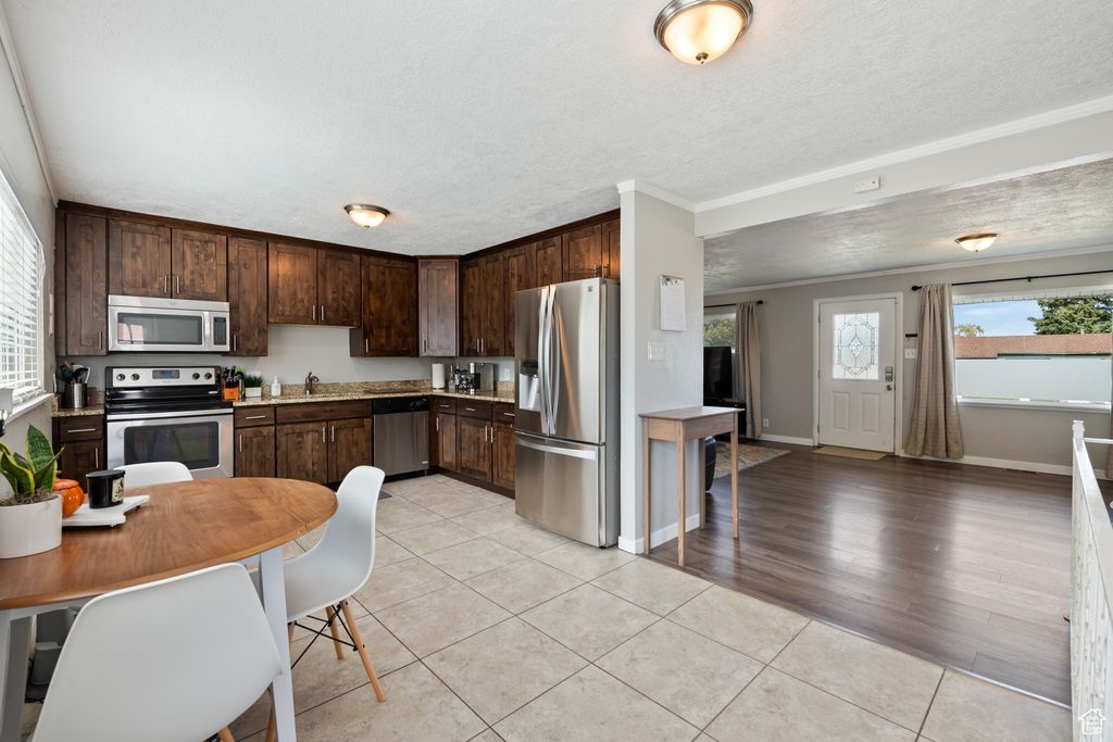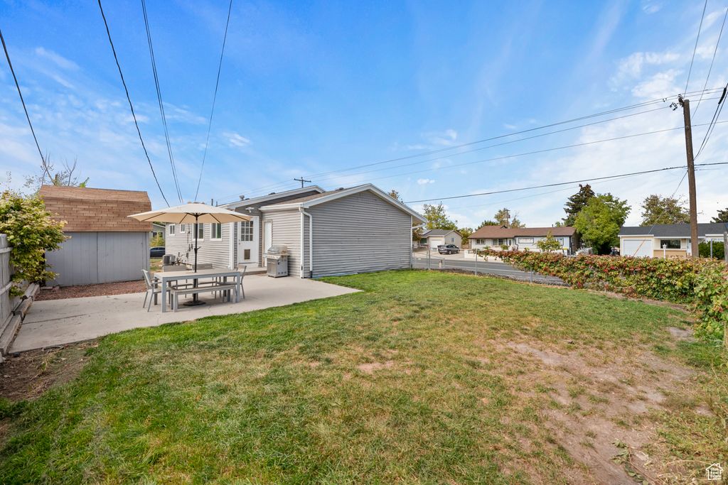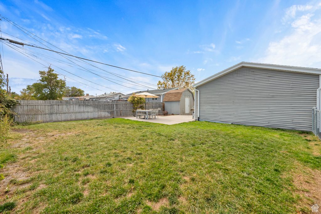This well-maintained rambler offers 4 bedrooms and 2 bathrooms on a fully landscaped, fully fenced corner lot. The layout features abundant natural light, a spacious living room, and a kitchen with stainless steel appliances and soft-close cabinetry. New carpet (2024). Fully finished basement with two bedrooms, a large family room, cold storage, and a full bathroom. Exterior highlights include an open patio, attached one-car garage, and an extra uncovered parking area. Within walking distance of David Gourley Elementary and Kearns Jr. High. Square footage figures are provided as a courtesy estimate only and were obtained from county records. Buyer is advised to obtain an independent measurement.