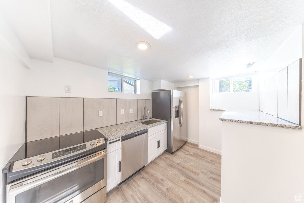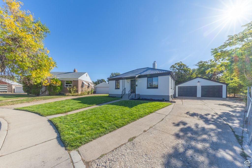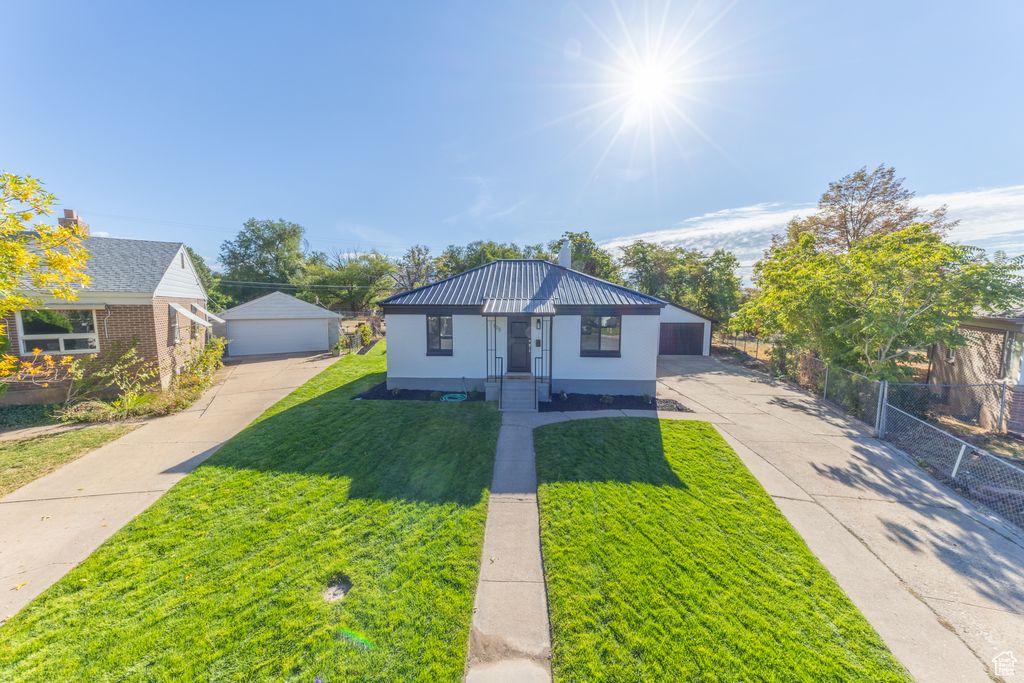 Price Reduced. Situated near Hill Air Force Base, this beautifully renovated home is truly move-in ready. Featuring 4 bedrooms and 2 full bathrooms, the property has undergone a complete, permitted renovation with all major systems brand new. The fully finished basement is equipped with everything needed for an internal ADU, offering excellent flexibility for extended family or rental income. Major Upgrades Include: Electrical: All new wiring with a 200-amp upgraded panel. Plumbing: New PEX supply lines, fully redone drain lines, and a 50-gallon water heater. Roof: Brand-new metal roof. HVAC: New furnace and central air conditioning system. Interior Finishes: LVL plank flooring throughout, quartz countertops in both kitchens, and new garage doors. Exterior Improvements: Newly sodded yard with automatic sprinklers. 644 square foot detached garage with brand new garage doors. Quiet cul-de-sac location with no immediate backyard neighbors. This home offers peace of mind with its complete system overhauls, modern finishes, and income potential-all in a prime Clearfield location close to schools, shopping, and HAFB. Square footage figures provided are estimated. Buyer is advised to obtain an independent measurement.