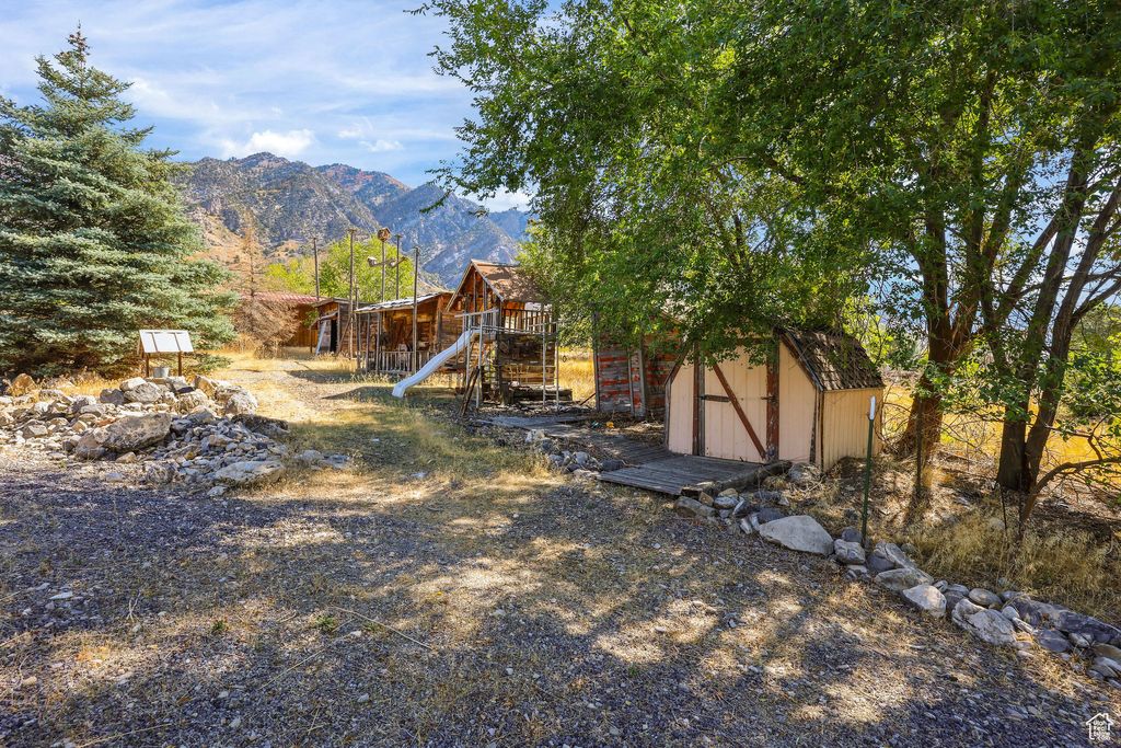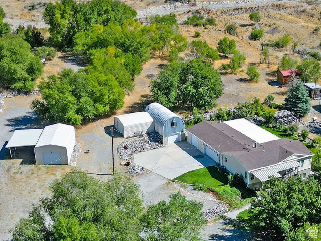 Come enjoy peace and quiet on 5 acres of hillside property accessed from a private road. The address is Brigham City, but the property falls within Honeyville City limits. Home remodeling includes an updated kitchen featuring granite counter tops, gas range and beautiful wood cabinetry. Both main floor baths are updated as well, the master offering a large walk-in shower and barn door made with wood matching the new cabinets. The basement offers a old wood wet bar in the family room, a bedroom, a den with closet, half bath and storage. Outside you'll find a treasure trove of outbuildings. A few smaller wood buildings ideal for play houses or hobby areas. The double garage includes 220 power, some storage closets and is attached to a third bay which was used as a workshop with work bench and wood stove for heat. Three other enclosed structures can also be used for storing your toys (side by side, boat, ect). A large sun room and attached covered patio with misters offer great places to gather or entertain.
