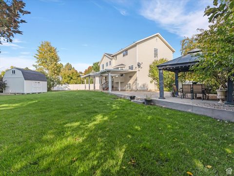 Spacious 6-bedroom, 3.5-bath home ideally located in a beautiful Davis County neighborhood. The private primary suite offers a peaceful retreat with stunning mountain views, while the inviting layout is ideal for both comfortable living and entertaining. Enjoy an extra-large, beautifully landscaped, fully fenced yard with a great covered patio and gazebo - perfect for outdoor dining or quiet evenings at home. Included is a large storage shed and gardening supplies. A park with a walking trail and pond is just 50 feet from the backyard, providing easy access to recreation and nature. This home also offers the convenience of a 40-foot concrete RV pad-perfect for extra parking or storing your recreational toys. It is conveniently located within 10 minutes of Lagoon and Station Park's shopping and dining, with quick freeway access in under five minutes. Families will appreciate that the elementary, junior high, and high schools are all within a mile, and Davis Applied Technology College is just 1.25 miles away. Commuting is simple, with only 20 minutes to downtown Ogden and 30 minutes to downtown Salt Lake City. From the primary bedroom, you'll enjoy exceptional mountain views that perfectly capture Utah's natural beauty.