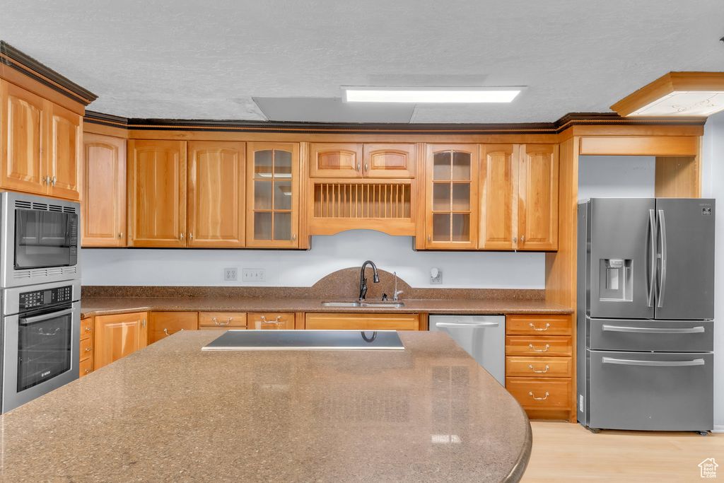 Welcome to this beautiful brick home with amazing updates and a huge yard in a fantastic South Jordan neighborhood! This well-cared-for home offers comfort, functionality, and thoughtful upgrades inside and out. Situated on nearly half an acre (.46 acres) with mature trees, lush grass, and three storage sheds (one with electricity), the property blends peaceful outdoor living with modern convenience. Step through the front door into a bright, open living area centered around a working fireplace framed by custom built-in bookshelves. The updated kitchen is a true showstopper with natural cherrywood cabinetry showing rich wood variation, a massive island, double ovens (including convection), an induction cooktop, and smart design touches like spice drawers, deep pull-out drawers, and dual trash compartments. You'll also find a built-in microwave, water purifier, and disposal, no detail was overlooked. Sliding glass doors lead from the dining area to a covered back porch overlooking the expansive, fully fenced yard, with a newer fence, perfect for relaxing, gardening, family time, or entertaining. The backyard also includes a sweet playhouse, along with the other sheds! There's also window well covers, mature trees for shade, and a large covered cement patio. The main level features three bedrooms, including a comfortable primary suite with dual closets and an updated bath featuring a beautiful shower (remodeled just last year). A full hall bath serves the other two bedrooms. Additional features include triple-pane windows for great insulation, Google Fiber, and plenty of closets and shelving throughout. Downstairs you'll find even more living space, a cozy family room, a snack bar area, a bedroom, and a large primary suite with two closets and an unfinished bath ready for your finishing touches. There's also a large laundry and utility room with extensive shelving, a food storage area, and a massive storage room. Recent upgrades and systems include a Trane two-stage furnace with humidifier and air purifier, low-salt water softener, a three-year-old water heater, and a full roof replacement (stripped to the deck) about 10 years ago. Solar panels help keep your utility bills incredibly low. The two-car garage includes great built-in storage (white shelves excluded), plus extra parking for up to six additional vehicles on the spacious driveway. This home could be your dream home in this amazing neighborhood after a few updates and repairs! Here lies a fantastic opportunity for an investor or anyone looking for a great opportunity. The sellers are also offering $10,000 toward closing costs or a 2:1 rate buydown to offset carpet replacement and make your move even smoother. The fireplace works well (the flue is in great condition) and simply needs to be moved slightly forward if you prefer a more flush aesthetic. Fridge and all sheds are included. (White garage shelves and basketball hoop excluded.) You won't find another home like this in South Jordan at this price, come see it before it's gone!
