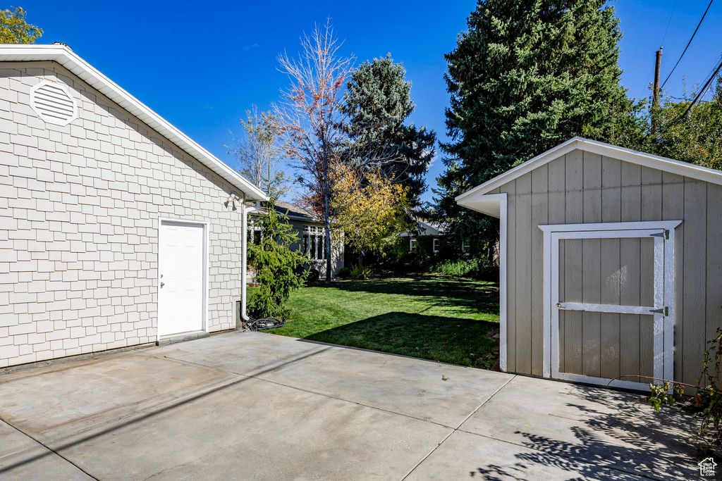 Here is a home with all the charm of an experienced host, the cheerfulness of a sunny day, the compactness of a Pullman, and the lasting appeal of a lovely painting. These words were first written by Joyce Evans in the Deseret News in July of 1948, when this home was featured in the Salt Lake Parade of Homes, and her description still fits beautifully today. Situated on a gentle slope with a rock wall and flat lawn this Georgian residence continues to carry a graceful spirit and a welcoming presence. A pillared veranda, white painted brick exterior with black shutters, ample windows, and a paneled recessed front door create a timeless and carefully composed facade. Inside, there is an immediate sense of welcome. The living room remains comfortable and inviting, with built in bookcases, a generous bay window, and a warm hearth that has anchored gatherings across generations. The kitchen has been thoughtfully updated with marble countertops, stainless steel appliances, and white cabinetry, opening into a bright rear addition with abundant windows overlooking a beautifully landscaped yard with mature trees and room to enjoy outdoor living. The garage accommodates four cars in a tandem layout, two wide with extended depth for two more vehicles. A concrete pad behind the garage and an additional storage shed provide room for outdoor gear, gardening tools, or recreation equipment. This property has been preserved with care and appreciation for its history, character, and architectural charm by the current owners. The home lives comfortably on its lot with pleasant outlooks and an ideal location with quick routes to the nearby canyons for recreation, close to schools, Holladay and Millcreek town centers, convenient access downtown Salt Lake City, the University of Utah, and to the airport.