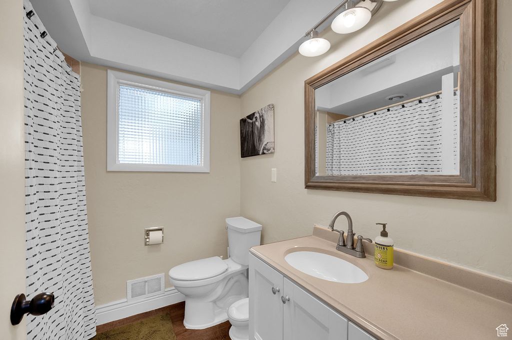 This one-of-a-kind home offers comfort, versatility, and an unbeatable location-right next to Roy High School and within walking distance to parks and all local schools. Inside, you'll find two master suites-one on the main floor and another upstairs with a walk-in closet and private balcony. The walkout basement includes a kitchenette and is zoned for an ADU, providing great options for guests, extended family, or rental income. Set on a quarter-acre lot with mature trees, the yard is ideal for entertaining with a gas line for a fire pit or BBQ, a large covered deck, and a brick patio next to a reflection pond that includes a pump-perfect for use as a kiddy pool on warm summer days. The oversized detached two-car garage is a dream setup-30 feet deep, heated, with water, a floor drain, 220V power, and a one-ton overhead crane. There are two driveways, plus RV hookups with power and sewer dump for added convenience. Major updates include two new furnaces, two new A/C units, a new water heater, and a newer roof and siding (2017). Homes with this combination of updates, flexibility, and location don't come around often-schedule your showing today!