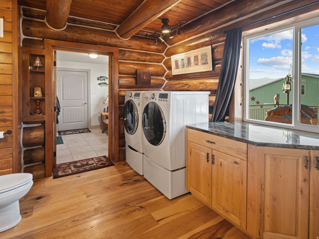 Experience the perfect blend of rustic elegance and modern comfort in this stunning log home situated on 2.66 beautifully maintained acres. With 4 spacious bedrooms, 3.5 bathrooms, an oversized attached garage, and a well-equipped barn, this property offers the ideal country lifestyle with room for animals, hobbies, and entertaining. Step inside and be greeted by log-beamed ceilings, handcrafted hardwood floors, and an inviting open floor plan. The great room features a striking floor-to-ceiling fireplace framed with hand-hewn wood and decorative metal accents, creating a warm and welcoming centerpiece. The kitchen is complete with custom cabinetry, stainless steel appliances, and a large island with bar seating. The open design flows seamlessly into the living area, perfect for gatherings with family and friends. Upstairs, a loft overlooks the main living space and provides a cozy retreat or home office area. The master suite offers comfort and privacy, featuring a spacious layout, ample natural light, and a ensuite bath. Enjoy your morning coffee on the covered front porch while taking in panoramic mountain views, or unwind on the back patio surrounded by open skies and peaceful scenery. All property information, boundaries and documents to be verified by buyer.