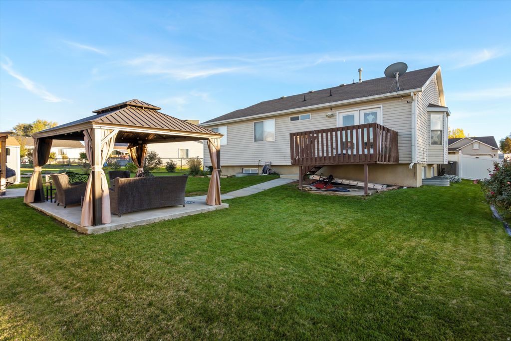 Fantastic Roy location! Nestled on a quiet cul-de-sac within walking distance of schools and parks, this updated rambler offers 6 bedrooms, 3 bathrooms, and just over 2,500 sq. ft. of living space. Enjoy convenient main-level living with vaulted ceilings, new laminate flooring, and an updated kitchen that opens to bright, comfortable living and dining areas. The fully finished basement includes a large family room with a kitchenette and two additional spacious bedrooms. Outside, enjoy a fully fenced, well-maintained yard with a deck and a new patio with a pergola-perfect for entertaining. Plus, there's plenty of extra storage space in the two included sheds. With easy access to shopping, restaurants, I-15, and Hill Air Force Base, you won't want to miss this home and all it has to offer.