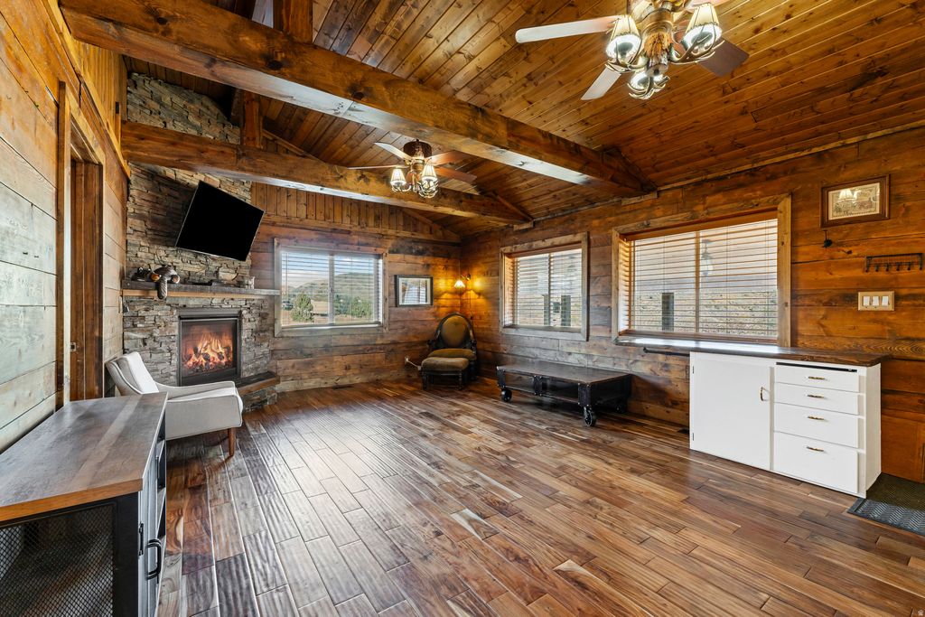 Look no further for your ideal mountain retreat! This beautifully remodeled and tastefully decorated cabin offers the perfect escape from everyday life. Enjoy stunning views of the red rocks at Causey Reservoir, just a quick 20-minute drive from downtown Huntsville. Inside, you'll find 2 bedrooms and 1 bath, vaulted ceilings, and modern upgrades including stainless steel appliances, an on-demand water heater, forced-air furnace, and washer and dryer-making it perfect as a full-time residence or weekend getaway. The separate bunkhouse comfortably sleeps six with two bunks and a queen bed, while the garage accommodates two small vehicles (such as side-by-sides or razors) and includes a workshop for projects and storage. Set on 7 private acres with mature trees, a private well, and incredible outdoor entertaining space, this property truly has it all. Plus, there are two concrete RV pads with full hookups-power, water, and wastewater dump. Peace, privacy, and panoramic views-everything you could want in a mountain escape!