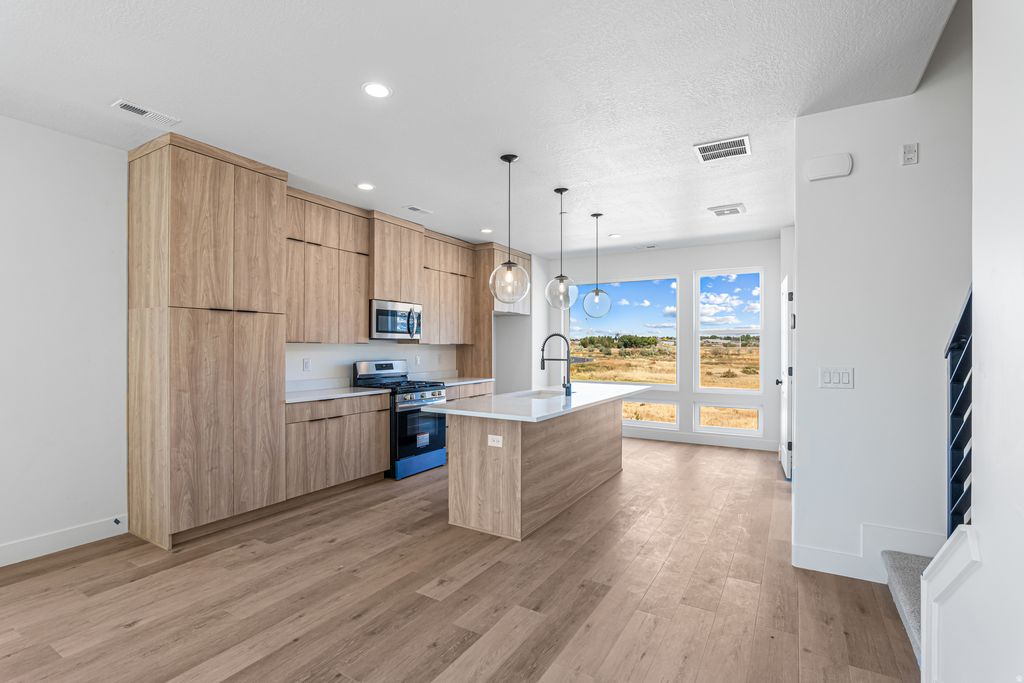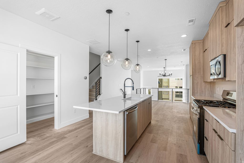 This End- unit Live/Work townhome is designed with flexibility and modern convenience. The main floor offers a commercial space, complete with a separate entrance and an additional bathroom, making it perfect for those who need a dedicated workspace. The second floor is where your main living area shines, featuring a kitchen with a large walk-in pantry, a dining area, and a living room that opens to an exterior deck. On the third floor, you'll find three bedrooms, a laundry room, and a stunning sky room with an upper deck on the fourth floor. This townhome is the perfect choice for those who work from home and want to blend business with comfortable living. This home is Move In Ready!