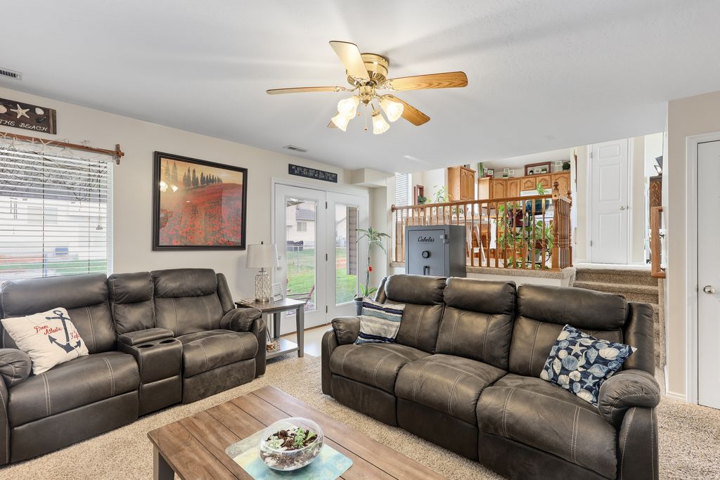 PRICE REDCUED!! Step into a bright, naturally lit home with an open floor plan and vaulted ceilings that make everything feel spacious and welcoming. You'll love having both a large living room and a separate family room-perfect for gathering, relaxing, or spreading out. The dining area is roomy enough for big meals, and the cozy kitchen shines with a custom tile backsplash, corner pantry, and tons of cabinet storage. The family room is a total vibe with its gas fireplace, wood mantel, custom brick hearth, and stylish carpentry accent wall. Convenient main-floor laundry and a bathroom make everyday living that much easier. Upstairs you'll find 3 comfortable bedrooms, with 2 more downstairs-giving everyone their own space, whether you're hosting guests or housing a crowd. Step outside to an inviting backyard oasis featuring a patio with a pergola for shade, tidy garden boxes, a handy storage shed, and a fully fenced yard with well-kept landscaping and plenty of room to play, relax, or entertain. An RV pad adds extra flexibility for vehicles or toys, and the basement crawl space offers a ton of additional storage. All of this is tucked into a quiet, convenient neighborhood just minutes from parks, schools, shopping, restaurants, and everything you need!