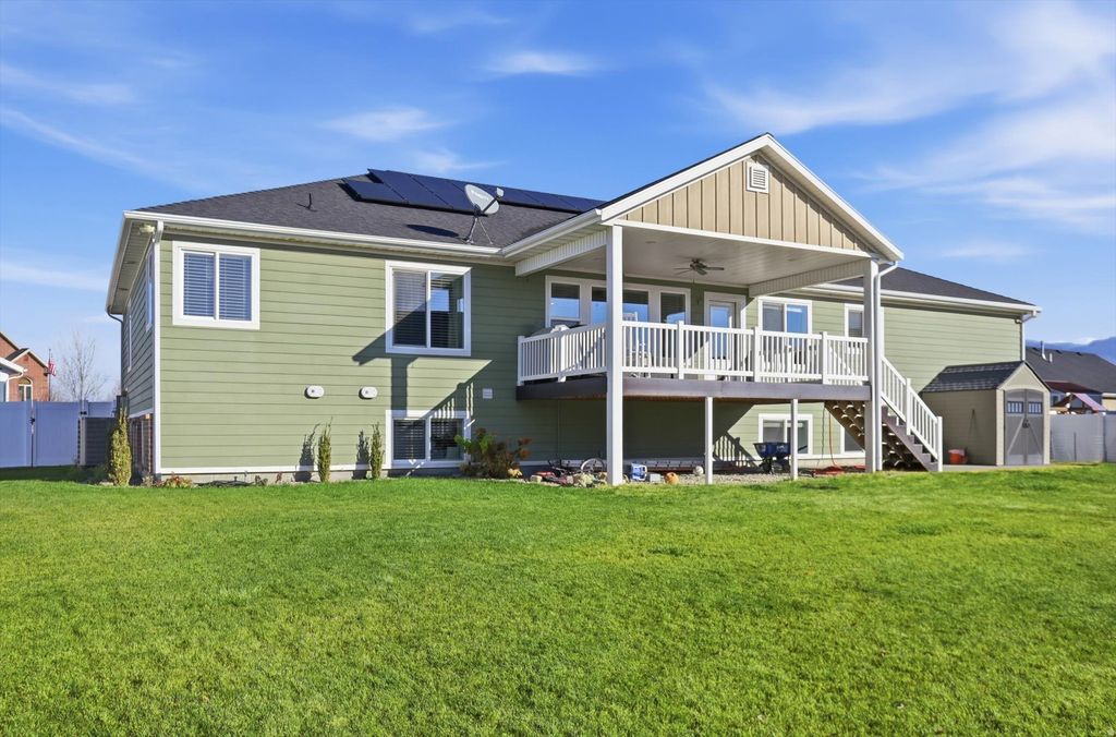 Welcome to this stunning 7-bedroom, 5-bath home featuring an thoughtfully designed spaces throughout. The open-concept chef's kitchen with granite countertops, knotty alder cabinetry, massive oversized 13' walk in pantry is a chef's and entertainers dream! Large windows that fill the room with natural light. The master suite is a spacious retreat with an ensuite bath, separate jetted tub and shower, and an expansive walk-in closet. The fully finished basement boasts a large family room and generously sized bedrooms. Outdoors, you'll find an extra-large patio and a covered Trex deck with premium railings, perfect for summer BBQs and entertaining, all complemented by an automatic sprinkler system. Dual A/C units ensure energy efficiency during hot summer months with PAID OFF SOLAR, garden beds, and Jelly fish lights. Practicality meets style with a spacious dream laundry room. Located near the brand-new Mountain View Jr. High, multiple parks, and a nearby golf course, this home offers a balance of suburban convenience and green spaces. With thousands in upgrades, this home is ready for you to move in and make it your own! Square footage figures are provided as a courtesy estimate only. Buyers are encouraged to obtain an independent measurement.