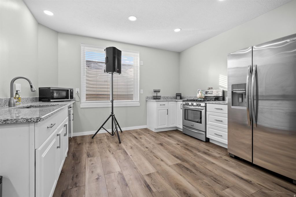 Welcome to your dream home, situated on nearly one acre of land! The expansive lot provides plenty of room for your flock with a separate fenced pasture area and a delightful duck pond. The detached 30x50 garage/workshop is a standout feature, equipped with a 14-foot door to accommodate larger vehicles, RVs, and projects. Enjoy the privacy provided by the full-yard vinyl fencing, as the yard has undergone a landscaping overhaul, including professional leveling and fresh sod, ensuring a pristine outdoor space. The road-base drive strip leads to the backyard, with fully opening gates allowing for convenient vehicle entry. The paid-off solar panels were installed on the ground, offering an energy solution without compromising the integrity of the roof. A large patio area offers plenty of space for outdoor entertaining, and is pre-wired for a hot tub. Inside, the main floor of the home is designed for single-level living, featuring the primary bedroom with an ensuite bathroom for ultimate convenience. The kitchen boasts newer appliances, making meal preparations a joy. A half bath, a laundry room, a large, comfortable living room with vaulted ceilings and a wall of windows, and an office complete the main-floor layout, ensuring functionality and ease. The second floor includes three bedrooms and an additional full bath. The basement houses a two-bedroom mother-in-law apartment including a second living room, a second kitchen, a second laundry area inside the walk-in closet, and a full bathroom. In total, the home offers 6 bedrooms and 3.5 bathrooms. Schedule your private tour today! Square footage figures are provided as a courtesy estimate only and were obtained from a previous MLS listing. Buyer is advised to obtain an independent measurement.
