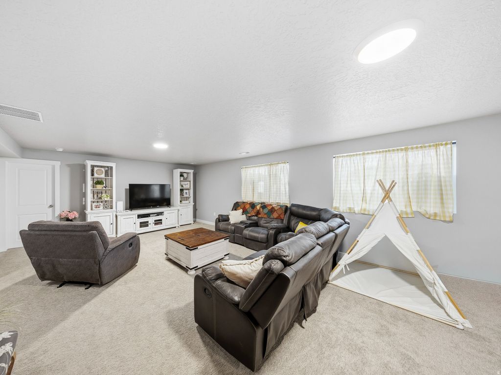 You are looking at a fully finished 6-bedroom and 3-bathroom home situated on a rare half-acre lot in Hooper, Utah. This fantastic property offers spacious main-level living with a gourmet kitchen, vaulted ceilings, LED lighting, and an oversized garage with a massive concrete driveway/RV pad for all your toys. The yard is fully landscaped and fenced with automatic sprinklers throughout. Conveniently located just 10 minutes from HAFB and Northrop Grumman, and within 30 minutes of world-class skiing, fishing, and scenic walking & biking trails, and only 40 minutes from Salt Lake International Airport. With so many features, a turnkey, Move-in-Ready Home like this one is hard to find. Schedule your private tour today, you'll be glad you did!
