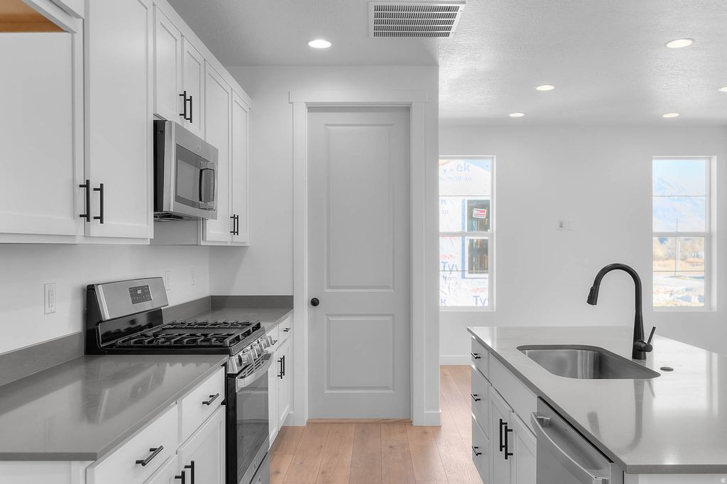 Come see this beautiful brand new Sundance Ballpark cottage home in a great Provo community with great lake views! This home features an array of amenities including can lighting, craftsman base & casing and energy efficient amenities with a tankless water heater for low cost living! The modern kitchen highlights white laminate cabinets, quartz counters and stainless steel gas appliances for all your culinary needs. Durable flooring includes laminate hardwood flooring, carpet and vinyl tile throughout. The owner's bathroom includes quartz shower surrounds and black matte hardware for a refined touch. Comes fully landscaped with localscaping features for an easy care, turn key experience!