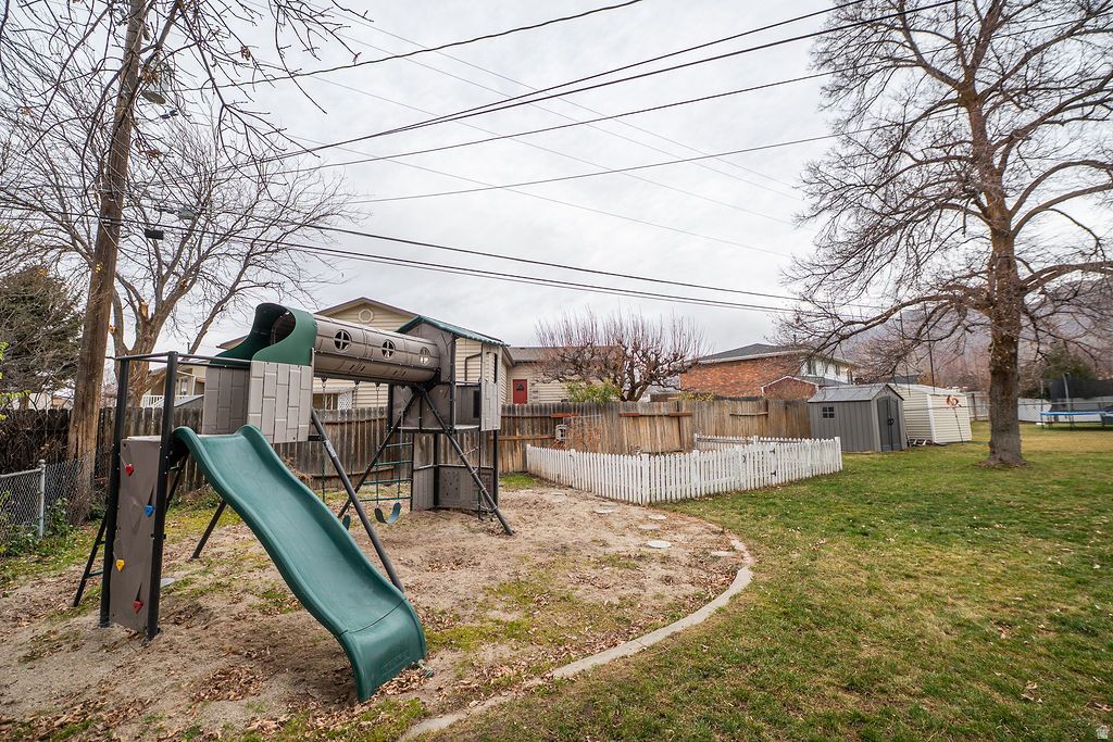 Charming brick rambler in the heart of Kaysville-location, character, and comfort all in one. Conveniently situated near the Kaysville Library, park, and splash pad, with quick access to Highway 89 and just minutes to I-15 for an easy commute. Inside, you'll love the beautiful wood floors, a spacious kitchen with granite countertops, and a semi-formal dining area perfect for everyday meals or hosting. Downstairs, there's room to grow in the basement, offering the potential to make this a true 6-bedroom home. Step outside to a large, fully fenced backyard with gorgeous mountain views-ideal for summer BBQs, play space, pets, or simply relaxing under the open sky. A true Kaysville gem-come see it for yourself! ***Square footage figures are provided as a courtesy estimate only and were obtained from Weber County. Buyer is advised to obtain an independent measurement.***