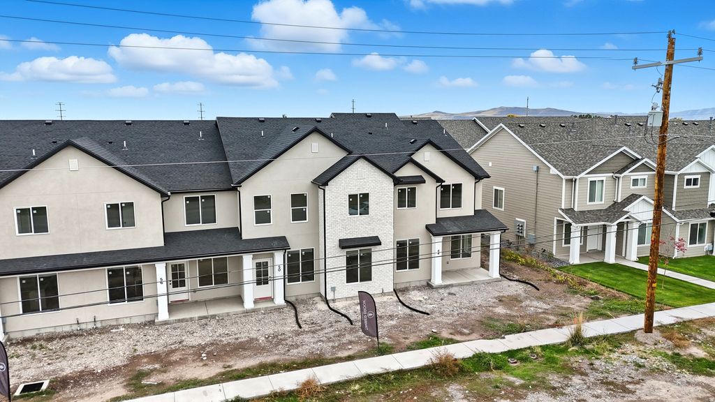 Built by Timber Brook Homes, one of Tremonton's most trusted builders, this mid-row new construction townhome blends quality craftsmanship with a clean, modern look. The warm color scheme and open-concept layout create a spacious, inviting feel throughout the main level. Enjoy custom cabinetry, high-end finishes, and a well-designed kitchen and living area perfect for everyday living. Upstairs, the primary suite offers a large walk-in closet and double-sink vanity. Ideally located near town and the freeway, yet set in a quiet, well-kept community, this home combines style, comfort, and convenience. Also receive a $4,000 seller concession when using our preferred lender, Kaden Niemann with Bolt Home Mortgage. Note: The pictures shown are of an end unit with this same layout and color scheme. This interior unit will not have the side windows, but all else is the same.