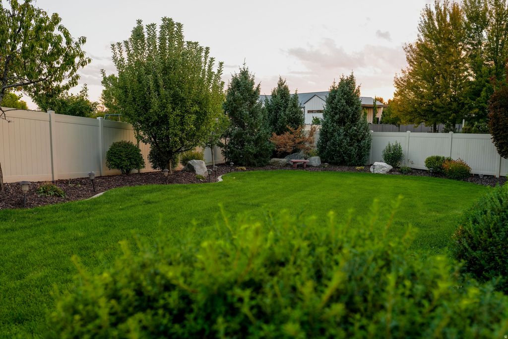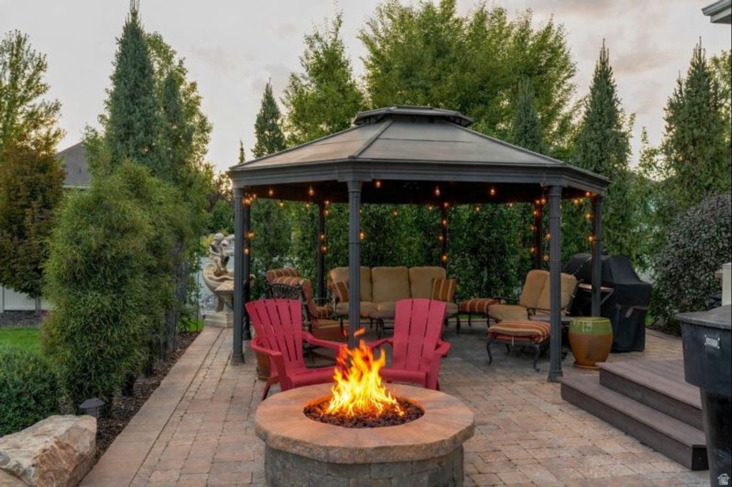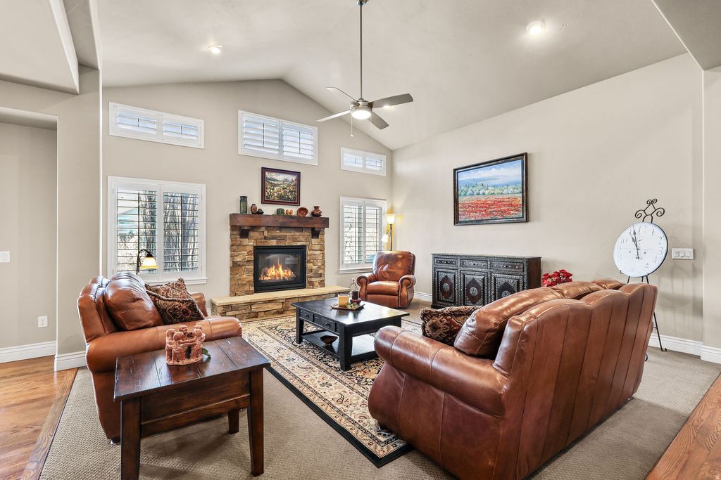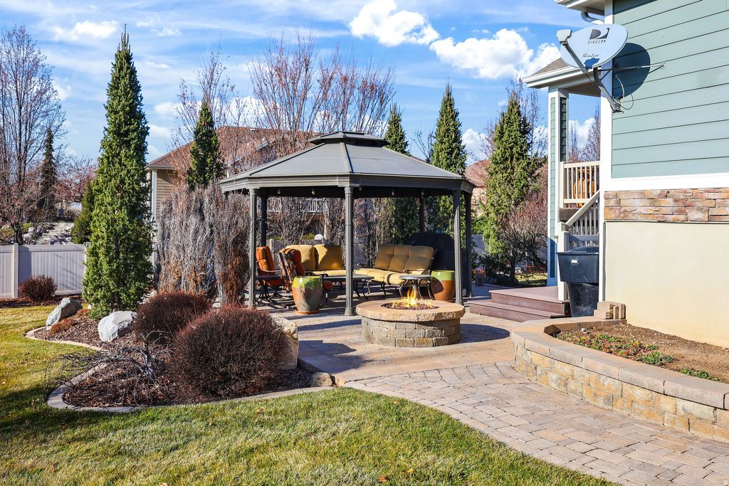 Located in the desirable Chestnut Farms community, this immaculate rambler by Symphony Homes was originally built as the model home in 2012. Designed with quality craftsmanship and thoughtful details throughout, it offers over 5,000 square feet of living space on a 0.40-acre lot in a quiet cul-de-sac setting. Inside, you'll find four bedrooms, four bathrooms, and a spacious, open floor plan ideal for both everyday living and entertaining. The primary suite includes a fireplace, a sitting area, and a spa-style bath. The kitchen features two-tone cabinetry, granite countertops, a built-in hutch, and double ovens. The daylight basement includes a second kitchen, offering flexible options for guests, in-law use, or extended living. Outside, the fully landscaped yard is exceptional - mature trees, covered deck, a pergola lounge and fire-pit area, for relaxing and entertaining. The location combines privacy with convenience - less than a mile to Station Park (shopping, dining and transit) close to Lagoon and approximately 16-21 miles ( 20-minute drive) to downtown Salt Lake City via I-15. The neighborhood includes the Chestnut Farms community pool and sport court/park, making this one a rare find where lifestyle and location align.