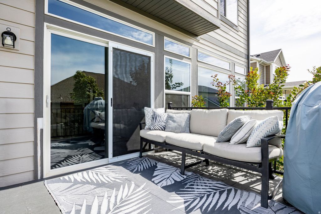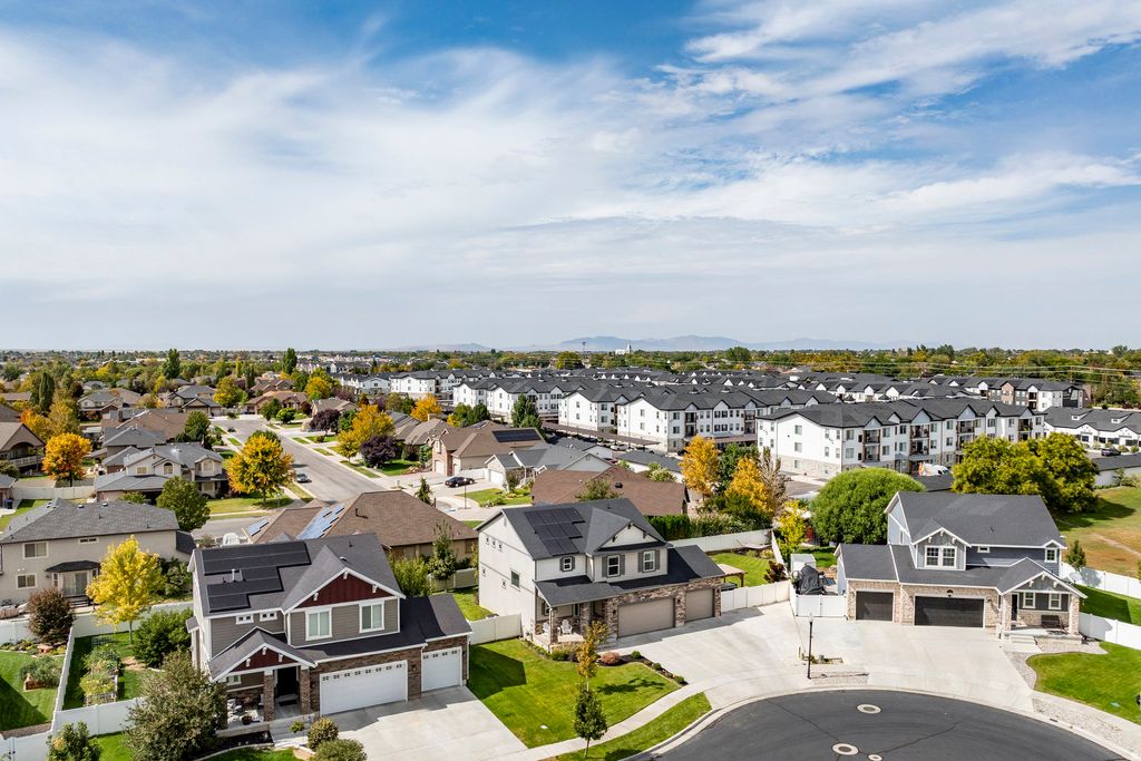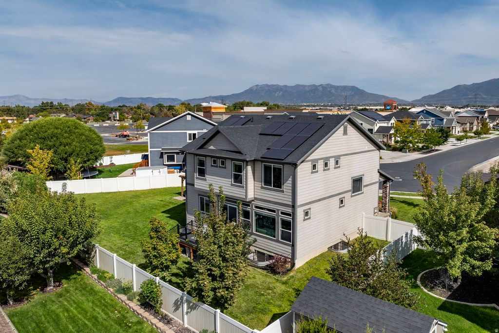 Seller is willing to pay the buyer in the amount for of one year of HOA fees. Tucked in an ideal neighborhood in a convenient location, welcome to a must-see, like-new home with all the extras! This spacious open-concept home features a finished basement with a bedroom, bathroom, living room, potential for another kitchen or wet-bar, and so much storage! Modern interior upgrades throughout, such as a custom modern fireplace and EV charger hook-up. Exterior highlights include a newer deck, paver patio with pergola, hot tub, RV parking, and solar panels. Enjoy Wasatch sunrises and mountain sunsets from your front porch-move-in ready and loaded with extras! Most furniture is for sale, including workout equipment set up in the garage!
