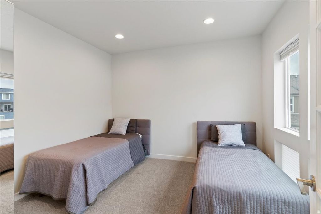 This home immediately feels different. As one of the largest end-unit townhomes in the community, it offers rare space, natural light, and flexibility-ideal for families or anyone wanting room to grow. Windows on multiple sides create a bright, open feel throughout. The layout works beautifully for everyday living, from movie nights in the theater room to gathering in the inviting family room with fireplace. The primary suite is a true retreat with a spacious bath and mountain views. Additional bedrooms provide space for kids, guests, or home offices. Just minutes from Station Park, this move-in-ready home combines comfort, convenience, and a layout designed to grow with you.