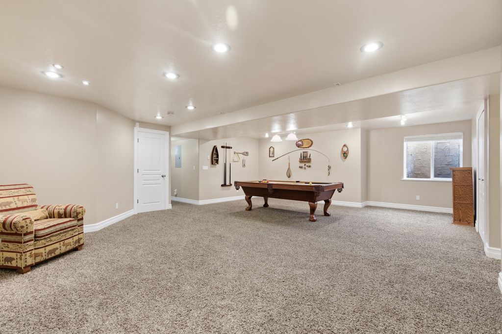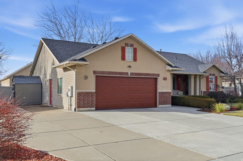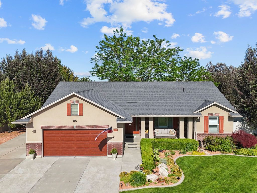 Move in ready, First American Premier Home Warranty included, true main level living home with custom upgrades! Must See home offering the perfect blend of comfort, functionality, and access to Utah's outdoor lifestyle. Conveniently located near the recently completed Davis Corridor, this home provides quick and easy commuting to Downtown Salt Lake City and Ogden, along with central access to Wasatch Front canyons, ski resorts, golf courses, hiking trails, and outdoor recreation north and south. The open-concept main level features custom hardwood floors with intricate inlay, vaulted ceilings, fresh neutral paint, and abundant natural light. The spacious kitchen offers custom cabinetry, updated appliances, a large granite island, and eat-in dining-ideal for entertaining or everyday living. Main-level laundry adds convenience for single-level living. The primary suite includes a walk-in closet and spa-like ensuite with jetted tub, travertine tile, and a large walk-in shower. The finished basement expands living space with three additional bedrooms, a full bath, and a large family room wired for surround sound. Brunswick pool table with ping-pong topper is included, creating a ready-made recreation area. Enjoy outdoor living in the fully fenced backyard with mature trees, covered patio, and beautiful landscaping. RV parking and storage shed provide room for toys and gear. Additional highlights include an insulated and finished garage with built-in storage, secondary water, and numerous updates throughout. Located within walking distance to Jensen Nature Park with trails and fishing. This home offers an exceptional lifestyle for outdoor enthusiasts and commuters alike. Agent is related to seller,
