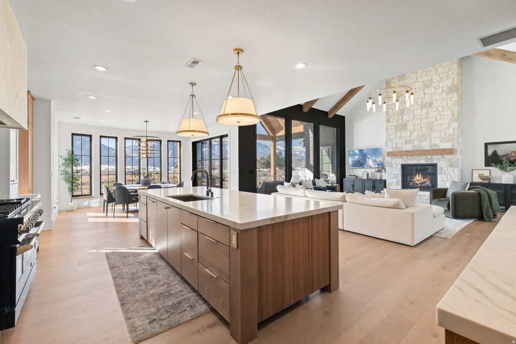 World Class Mountain Views | Custom Designed Home in Prestigious Eagle Ridge Community | Welcome to your dream mountain retreat nestled in the highly esteemed Eagle Ridge community in Eden! This custom-built home offers breathtaking, unobstructed views of Nordic Valley and Ben Lomand, from the comfort of your home and covered deck. Expertly crafted through a seamless collaboration between architect and designer, this home was thoughtfully designed to showcase its breathtaking natural surroundings with expansive picture windows strategically placed throughout. Step inside to find that every inch of the home was meticulously curated by a designer, with finishes that reflect extraordinary attention to detail and thoughtful intention at every turn. This open-concept masterpiece is flooded with natural light, and features a seamless flow between living, dining, and entertaining spaces. The heart of the home is a chef's dream kitchen, boasting custom cabinetry, high-end appliances, a sprawling island, and butler's pantry; perfect for hosting or everyday luxury. The large dining room softens the eye with a slightly arched wall and ample windows. The kitchen looks into a beautiful and cozy great room featuring a full natural limestone fireplace and striking wood beams that blend warmth with modern sophistication. Escape to your primary suite sanctuary, where a wall of glass windows frame the incredible mountain views. The wood ceiling and large fireplace maintain a cozy feel, even in the heart of ski season. The primary bathroom showcases an expansive walk-in shower, freestanding soaking tub, heated tile, his-and-her vanities, and a luxe feeling walk-in closet. The main floor laundry room connects to the master bathroom; a thoughtful feature you won't want to live without, ever again. The dreamy floor plan continues downstairs with a sprawling daylight walkout basement featuring a family room, large kitchenette, theatre room, an additional laundry/craft room, 3 bedrooms, and 2 bathrooms. This exceptional home was built on one of the most desirable lots in Eagle Ridge due to its perfectly angled views and the HOA open spaces directly behind and to the side of it, which gives privacy and also helps protect your views. This property is situated just 12 minutes from Powder Mountain ski resort, and 10 minutes from Pineview Reservoir. Snow Baskin ski resort is also just a 25 minute drive. There are abundant trails for hiking and mountain biking. Outdoor recreation is truly at your doorstep! This is more than a home, it's a lifestyle. Come experience the unmatched beauty and serenity of this extraordinary mountain haven.