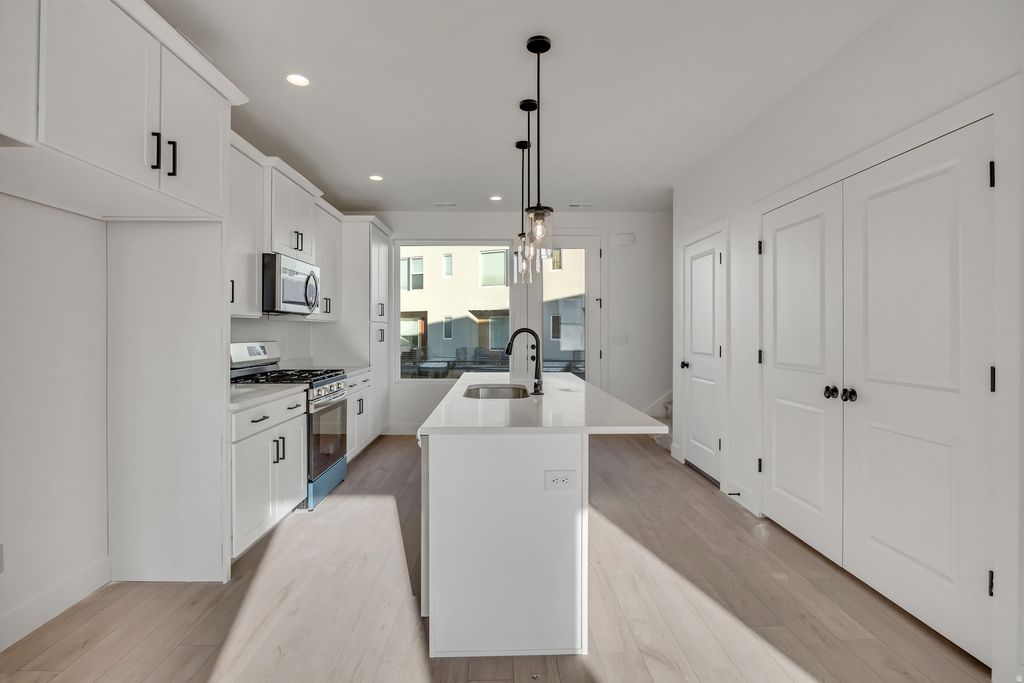 Welcome to our Cabo floor plan! Featuring 4 bedrooms, 3.5 bathrooms. This affordable yet luxurious townhome has an open layout, with plenty of light and a variety of options for personalization. The first-floor open flex space can be used as a home office or additional living room. The second-floor kitchen, featuring an oversized island and a pantry. Right off the kitchen is your outdoor deck. Large windows in the living room and owner's suite let in lots of mood-boosting, natural light. When it's time to relax for the night, the owner's suite is calming and peaceful, with a large walk-in closet, walk-in shower, and dual vanities for ultimate luxury. The Cabo is the epitome of carefree, light-filled living. Investors welcome. Great location with brand new city park just steps away! **Estimated Completion Feb 2026 Come visit us in our new model at 1483 W Burke Lane (675 North) Farmington, UT, 84025