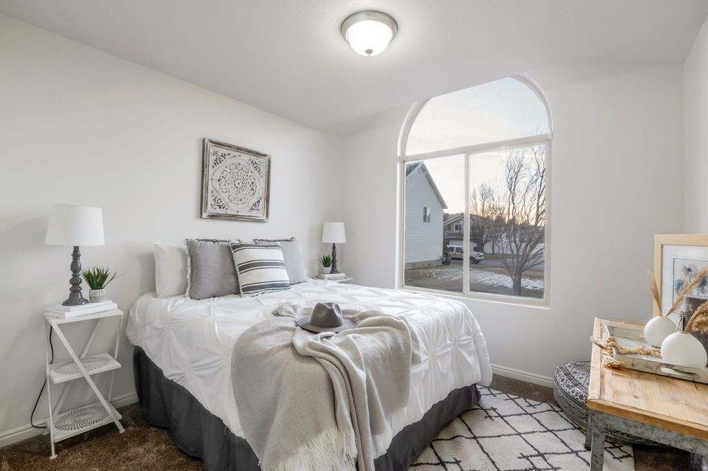 Fully renovated and thoughtfully updated, this home offers a refined blend of modern finishes, functional design, and an exceptional setting. The interior features quartz countertops, stainless steel appliances, and updated flooring throughout, including luxury vinyl plank and new carpet, creating a cohesive, move-in-ready space. The floor plan is well designed with vaulted ceilings, abundant natural light, and a large kitchen island that anchors the main living area and supports both everyday use and entertaining. Finishes and improvements were selected for longevity, consistency, and clean presentation. Positioned along a walking path and adjoining community open space, the property enjoys a rare sense of separation and privacy. The south-side open area creates the feel of an expansive yard-approaching a half-acre in perceived space-while the HOA maintains the common grounds, offering the benefit of scale without the maintenance. Convenient access to Highway 89, I-84, and Hill Air Force Base makes this location both efficient and highly desirable.