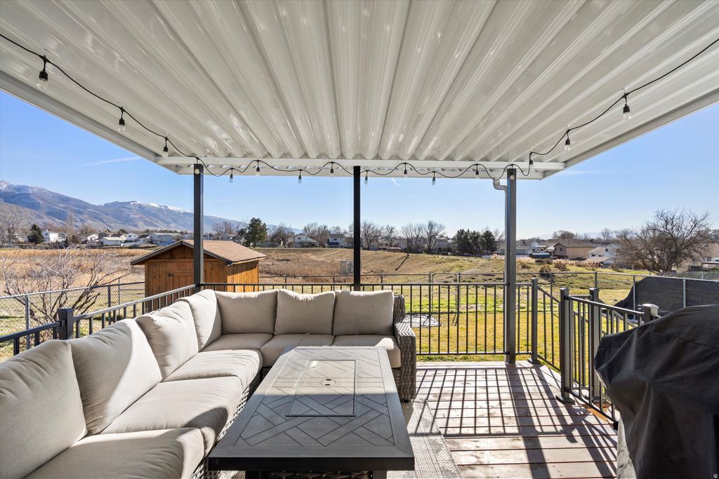 Mountain Views & Modern Upgrades in East Layton. Located in a highly desirable, quiet neighborhood zoned for top-ranked schools, this beautiful home offers a rare backyard sanctuary. The property backs entirely to a city nature preserve, providing ultimate privacy (no rear neighbors!) and unobstructed mountain views that you can enjoy from your new, covered deck (built less than a year ago). Inside, the open floor plan is perfect for entertaining, featuring a spacious living room centered around a stunning shiplap fireplace. The layout includes three bedrooms upstairs, including a primary suite with a walk-in closet and private ensuite bathroom. The fully finished basement offers a fourth bedroom and another full bathroom. Bonus features include a Tesla hookup in the garage, hot tub hookups, and an extra-large shed for storage. Don't miss this opportunity!