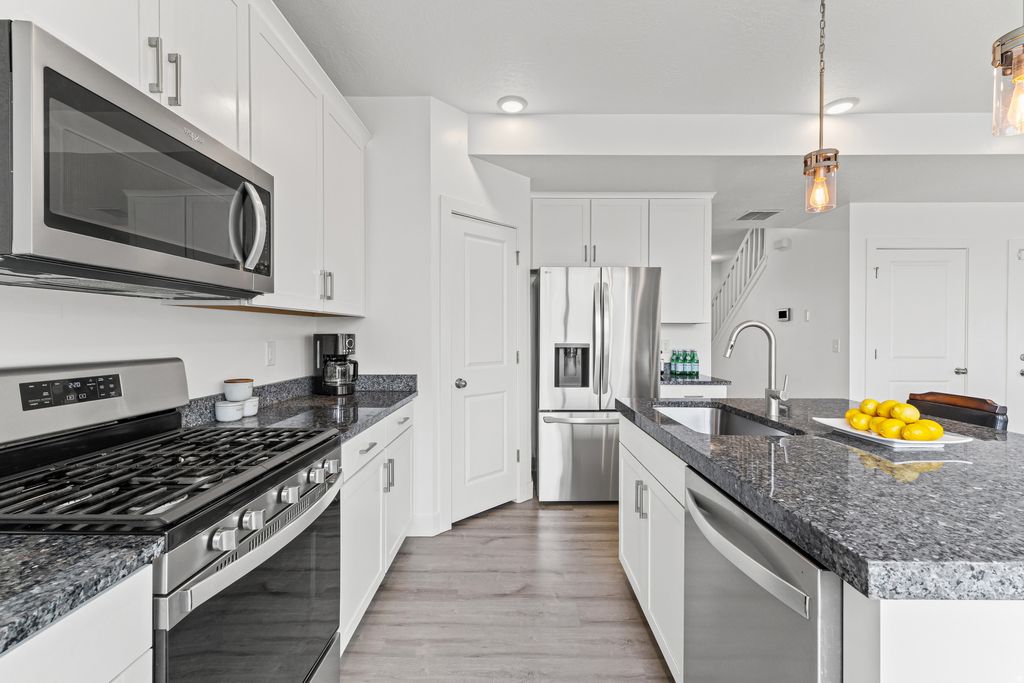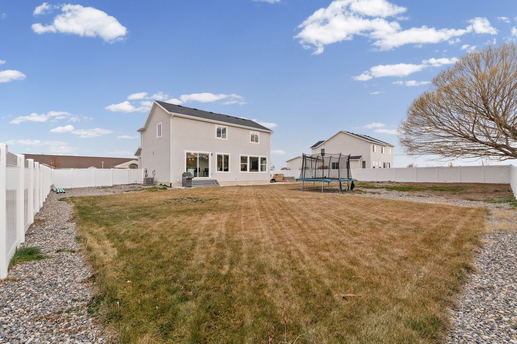 Enjoy easy living in this inviting two-story home with 2,056 square feet, three bedrooms, two full baths, and a half bath. The open main level flows from the kitchen into the living and dining spaces, making it great for everyday life or hosting. upstairs, the bedrooms feel spacious, including a private primary suite with a walk-in closet. The backyard offers endless potential, Power, gas, and water has been ran out back,with room to design your ideal outdoor space or add a future garage, shop, or ADU. The location puts you close to the new I-77 freeway, Antelope Island, parks, shopping, theaters, and everyday conveniences with access to a neighborhood community pool.