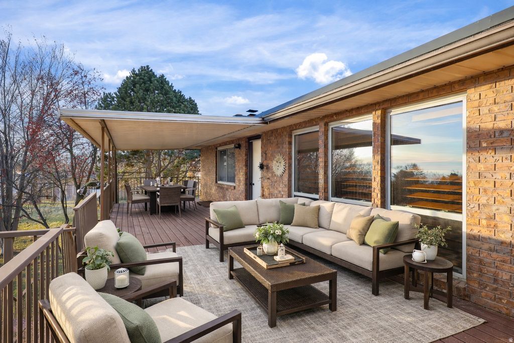 Welcome to this all brick, stunning rambler in one of Pleasant View's most desirable neighborhoods, offering breathtaking mountain and valley views. With over 3,500 square feet, this home features 6 bedrooms, 3 bathrooms, and the convenience of laundry on both levels. The completely remodelled kitchen with real cherry wood cabinets, opens to comfortable living spaces, including a formal living room with real walnut crown, perfect for entertaining or relaxing. The walk-out basement boasts a spacious family room with plenty of space where a second kitchen could easily be added-ideal for guests or potential rental income. Step outside to a large covered deck where you can entertain or simply unwind while soaking in the city views. Enjoy peace of mind with paid-off solar panels and an oversized generator, ensuring you're never without power. Sitting on over a half-acre, this property offers ample storage inside and out, giving you room to spread out and enjoy this quiet corner of Utah.