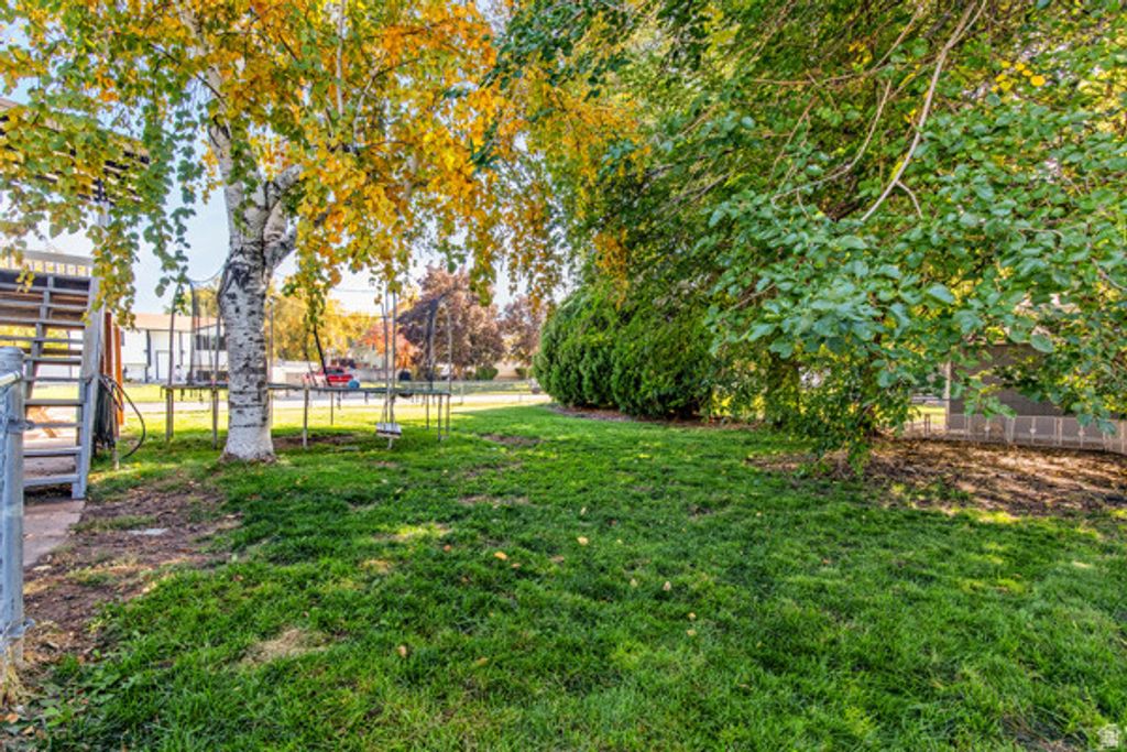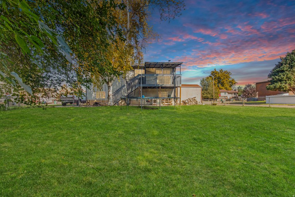 Charming Roy home featuring 3 bedrooms and 1 bathroom with a fully finished basement in a quiet neighborhood. Great location near I-15, and shopping. You'll love spending time on the covered deck overlooking a large, fully fenced backyard with mature trees perfect for BBQs, kids, or pets. Additional highlights include a one-car garage, new roof, kitchen, deck, carpet and bathroom all updated in 2025. Furnace was updated in 2021 and new water heater installed in 2023. This home is move in ready! Square footage figures are provided as a courtesy estimate only and were obtained from county record . Buyer is advised to obtain an independent measurement.