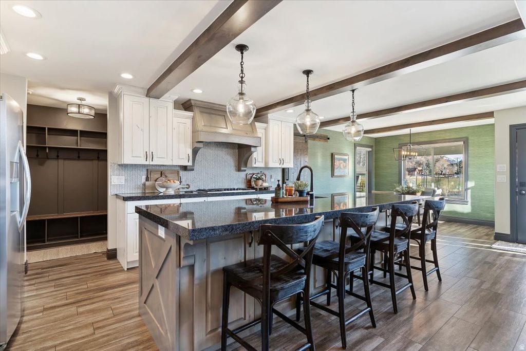 Welcome to one of the most desirable spots in the Ogden Valley-an updated, fully dialed-in horse property just minutes from everything that makes this area special. Pineview Reservoir is only a mile and a half away, and you're five minutes from mountain trails perfect for riding horses, taking out the razors, or just enjoying a sunset walk with unbeatable views in every direction. The owners have already done all the hard work. The yard is fully fenced for kids or dogs, and the pastures behind are fully fenced for horses or livestock. Both pastures run off well water and have full irrigation, plus the yard and landscaping are on an automatic sprinkler and drip system. The barn includes 110v and 220v power, four stalls, a storage room, a shop space, a tack room, and a kennel room with indoor/outdoor kennels. The backyard is a dream-with professional landscaping, a new 20x40 pool added in July, and a firepit ready for summer nights. No backyard neighbors means peace, space, and uninterrupted views. The exterior features real natural stone that carries inside as well, paired with huge vaulted ceilings and floor-to-ceiling windows that keep the home bright and open, and the home itself has seen a long list of upgrades: new carpet throughout, updated lighting, fresh paint, new window treatments including electric roller shades in the family room, plantation shutters, a new radon system, and more. The kitchen and living spaces have thoughtful finishes like granite countertops and accent walls, and the master closet includes washer/dryer hookups for added convenience. Downstairs, a mini bar with a sink and small fridge makes entertaining a breeze. The four-car garage has epoxy floors and fresh paint. This property gives you the lifestyle you're after-space, privacy, views, and all the updates already done. Just move in and enjoy.