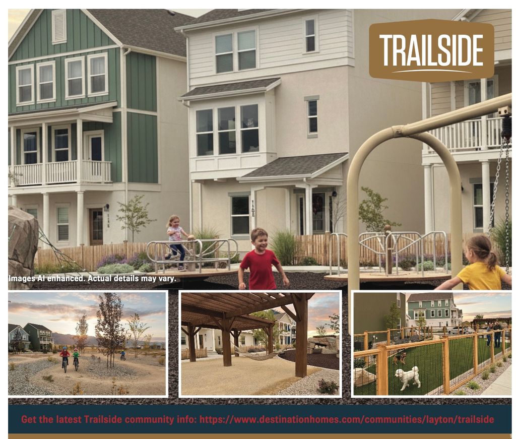 Oakridge floor plan in the Trailside community. Primary Suite with double sinks, walk-in closet. Gourmet kitchen with upgraded cabinets, quartz countertops and stainless steel appliances. Flex room on main level could be 4th bedroom of home office. Trailside community features a hammock park, playground, Paw Park, bike and walking trials! Visit our model home at 1833 W 1150 N, Layton, UT 84041 Mon-Sat, 11 AM - 6 PM.