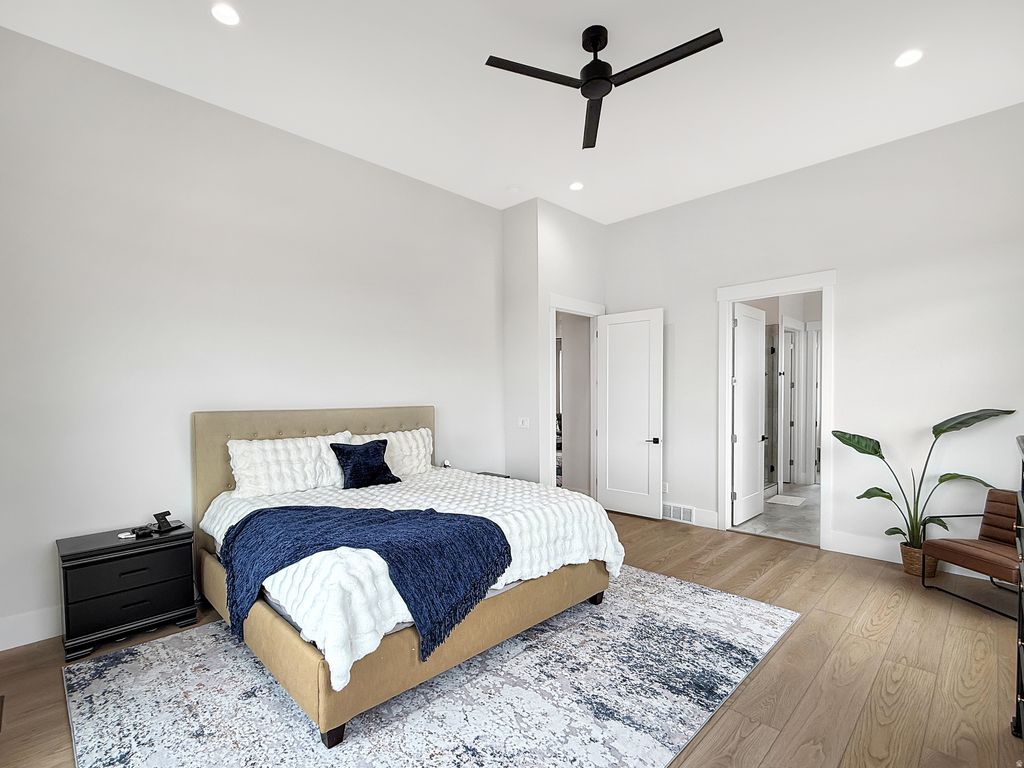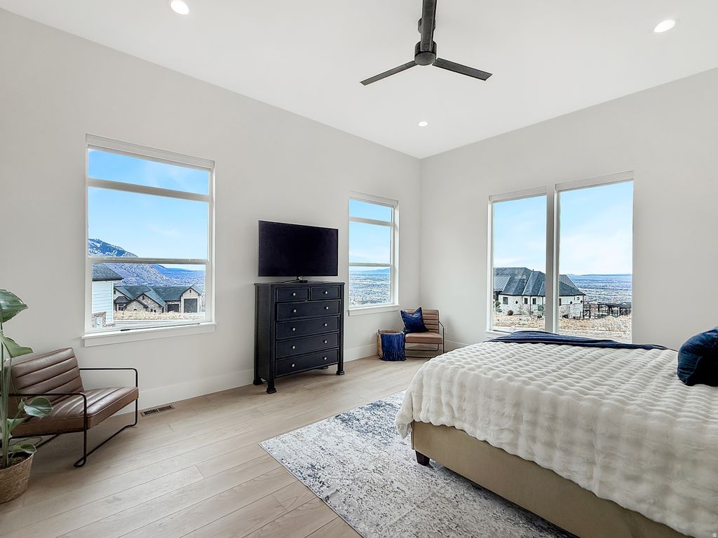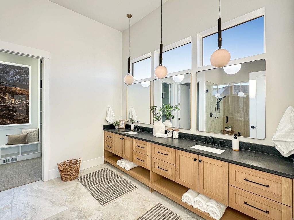 This stunning, custom-built home is a masterpiece of design and functionality. The striking exterior and large double doors makes an elegant first impression, while the versatile floor plan is perfectly suited for both hosting gatherings and enjoying peaceful seclusion. The chef's kitchen is a showstopper with custom cabinets, top of the line appliances and a large butler's pantry that adds both charm and function. The home offers plenty of natural light with gorgeous mountain views out the back windows. The luxurious primary suite is conveniently located on the main level, and offers breathtaking views of the valley. The spa-inspired primary bath includes double sink, a soaking tub and shower and a large walk-in closet. There's plenty of space upstairs with four large bedrooms, two bathroom and an oversized bonus room. The finished basement provides two additional bedrooms and bathrooms, a second kitchen, additional laundry room, a huge family room and plenty of storage space. Throughout the home, thoughtful design choices shine. This remarkable home blends luxury and comfort into a single package, offering an exceptional lifestyle at the Cove in North Ogden.