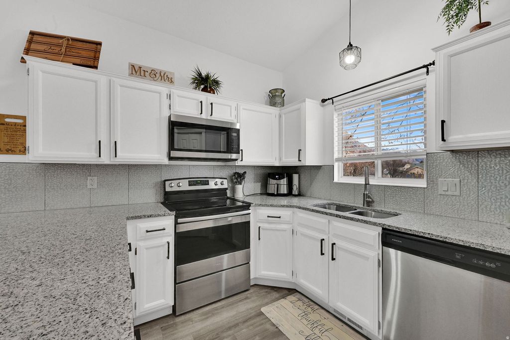 Immaculate and completely updated in 2022 with new flooring, paint, carpeting, granite countertops, appliances, furnace, water heater and more! This home showcases true pride of ownership throughout. Abundant natural light highlights the beautiful built-ins and a spacious walk-out family room with custom bookshelves. The home offers five generously sized bedrooms and three updated bathrooms, including a large primary suite with a walk-in closet. Tons of storage space in and under the basement. Enjoy tranquil outdoor living on the covered east-facing back deck right off the dining area, surrounded by young, producing fruit trees (Peach, Apricot, Plum and Asian Apple), and garden space, all enhanced by majestic mountain views. Large RV parking and a peaceful setting complete this exceptional home inside and out - all at a hard-to-find price point. Washer and Dryer are negotiable. Hanging Curtains are excluded from the sale. Living Room set, Full size bed and Twin bed on 2nd floor and Gun Safe are avialable for purchase with a separate Bill of Sale.