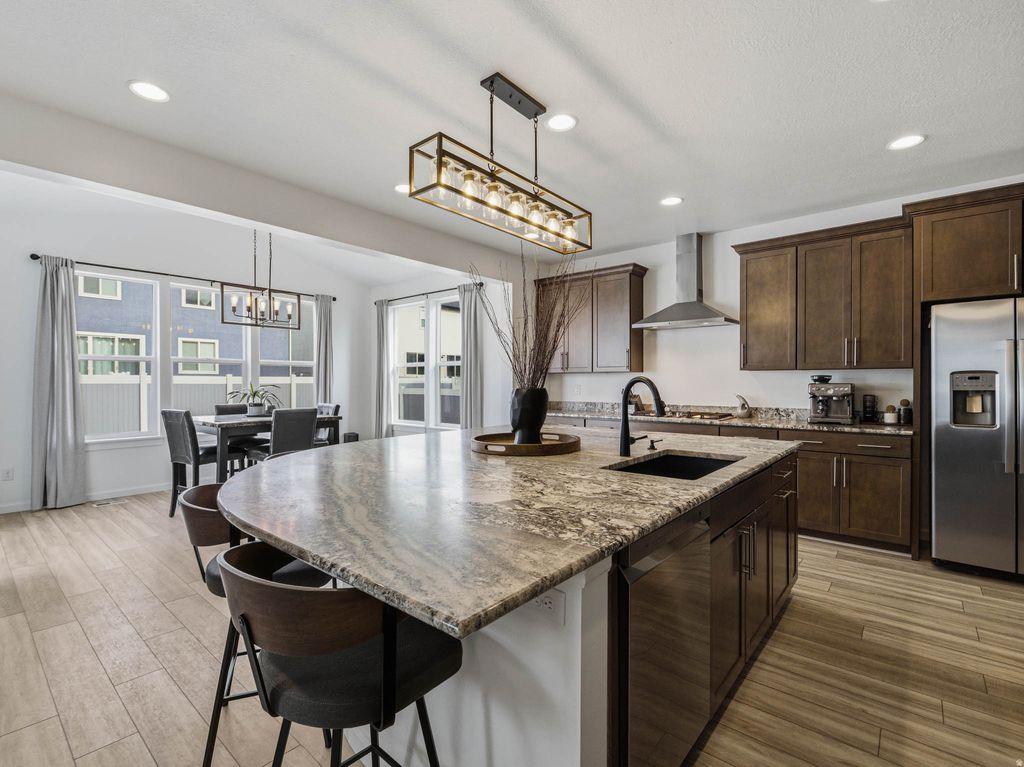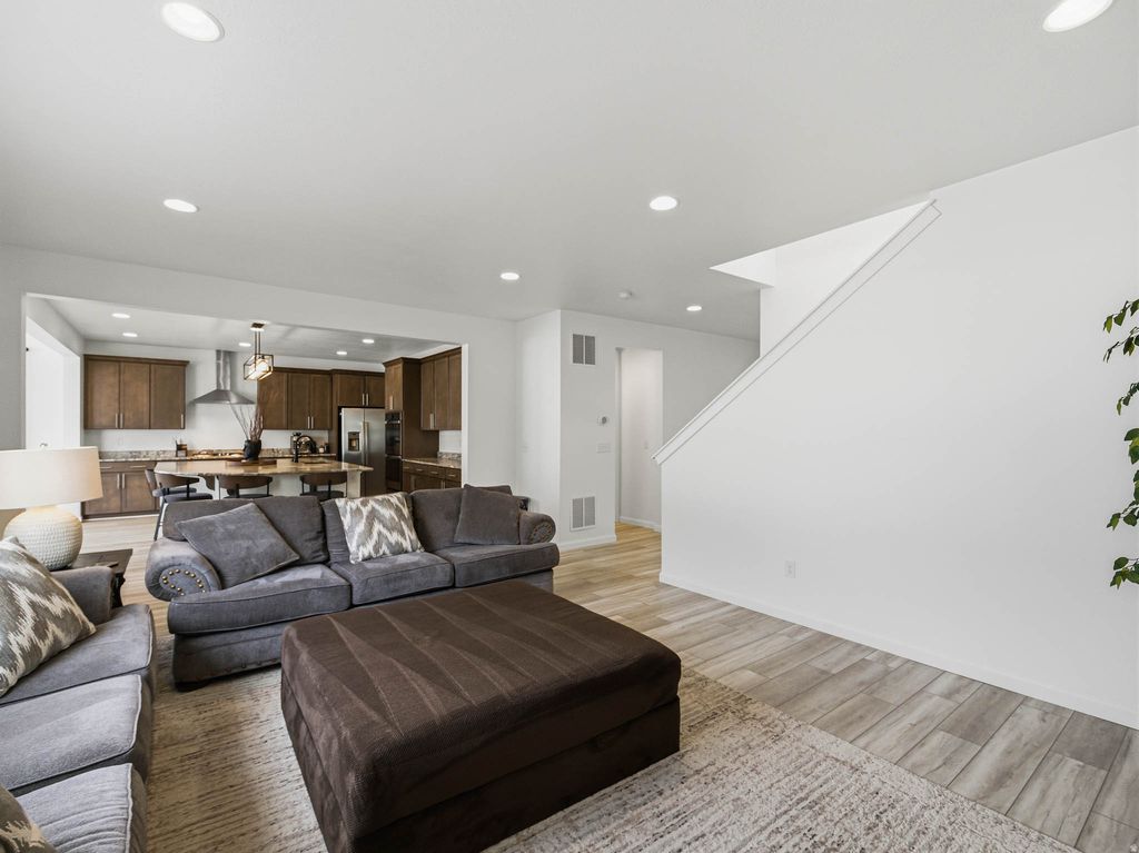 Immaculately maintained and completely move-in ready, this vibrant two-story home blends comfort, style, and everyday functionality in all the right ways! The showpiece of the home is the stunning kitchen, designed to impress with a large island bar, double ovens, sleek countertop range with range hood, and a bright pop-out dining addition that fills the space with natural light and creates the ultimate gathering hub. A welcoming entry opens to flexible space perfect for a home office or cozy sitting area, flowing effortlessly into the spacious great room built for connection and entertaining. Upstairs offers four bedrooms and two baths, including a relaxing owner's suite with walk-in closet and deluxe bathroom, plus a versatile loft that adapts to your lifestyle. Pride of ownership shines throughout with exceptional cleanliness and care, while the unfinished basement provides room to grow and customize. Outside, enjoy the patio along with the 3-car garage. Located in a sought-after community featuring a pool, hot tub, splash pad, and pickleball courts, this home delivers space, energy, and lifestyle all in one!