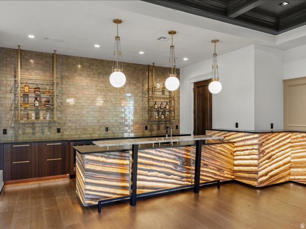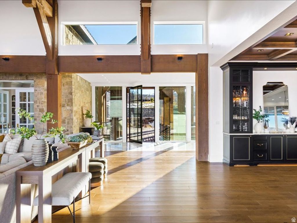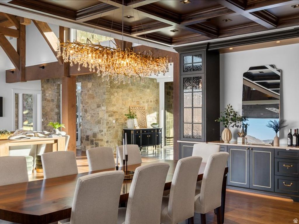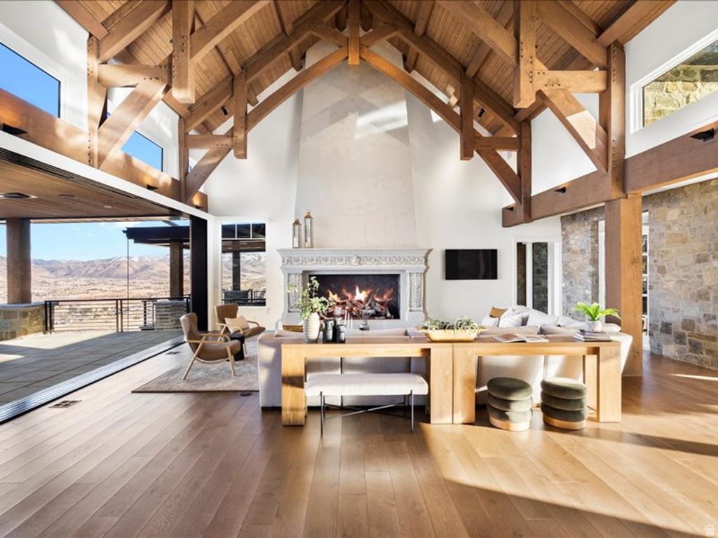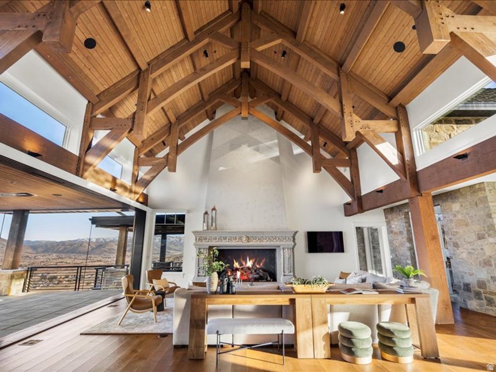 Rising above Ogden Valley on the premier lot within Legacy Mountain Estates, this once-in-a-lifetime 5.6-acre estate is a masterwork of scale, imagination, and precision. Spanning an extraordinary 18,700 square feet, the residence offers eight bedrooms and fourteen bathrooms, delivering uncompromising luxury at every turn. Arrival is nothing short of cinematic, framed by custom-landscaped grounds, cascading waterfalls, stone stairways, a reflection pond, and a dramatic porte cochere. From this unmatched vantage point, the estate commands truly one-of-a-kind panoramic views, an ever-changing masterpiece of mountain peaks, valley lights, and endless sky. Beyond its breathtaking setting, the property features amenities rarely found in private residences, including more than $1 million invested in a fully automated, professionally designed lighting, audio, and control system. With a multi-point security system, gated entry, and extensive camera coverage. For seamless indoor-outdoor living, the main level and primary suite open to expansive heated decks through automatic sliding accordion doors. Just ten minutes away lies world-renowned Snowbasin Resort, set to take center stage as a premier venue for the 2034 Winter Olympics, offering effortless access to championship skiing, dining, and Pineview reservoir, offering year-round adventure. A private one-bedroom casita provides additional space for guests, while an entire spa and wellness retreat awaits, featuring a massage house, steam shower, sauna, and dedicated gym. Hidden beyond the expected lies a secret passage leading to a meticulously crafted mine-inspired destination, home to a wine cellar, speakeasy, infinity cart viewing hall, and the showstopping 20,000-gallon lagoon theater. Here, water, light, and architecture converge through exterior-fed fountains, aqua-stage elements, balcony seating, and performance space. Rarely does a property of this scale, artistry, and provenance come to market. This is more than a home; it is a generational estate, an architectural landmark, and a singular mountain legacy. An additional 3300 sq ft heated garage space. Square footage figures are provided as a courtesy estimate only. Buyer is advised to obtain an independent measurement.
