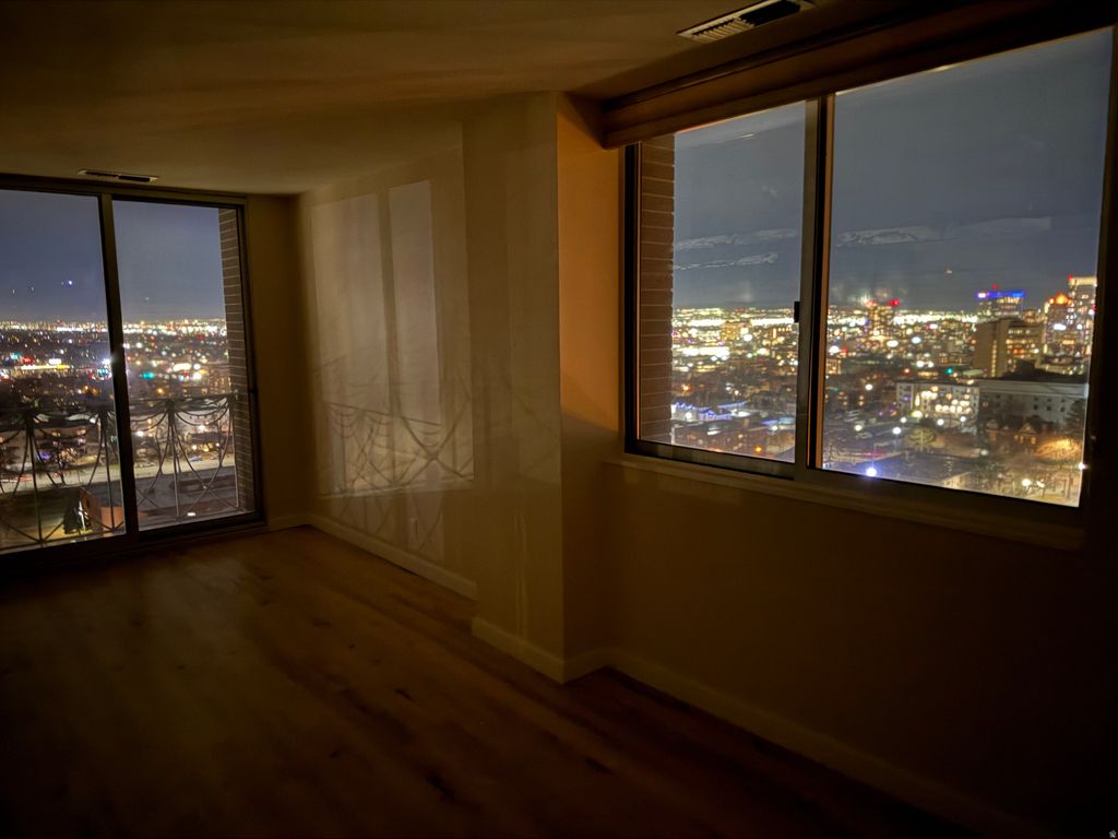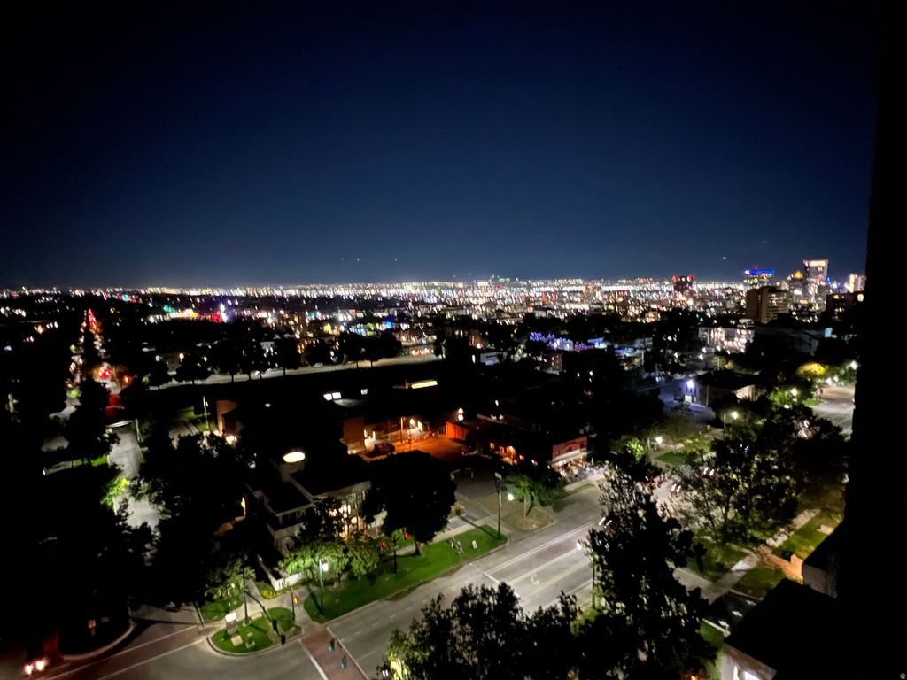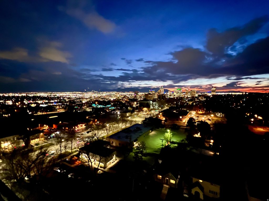MOST REMARKABLE VIEWS OF THE CITY LIGHTS IN A HIGH RISE CONDO IN SLC BECAUSE OF THE LOCATION ON HISTORIC SOUTH TEMPLE AND 777 EAST, AT THE BASE OF THE AVENUES, A MILE FROM CITY CREEK, 1.5 MILES FROM U OF U & MEDICAL CENTERS, BLOCKS FROM TROLLEY SQ, HIKING TRAILS, RESTAURANTS, AMENITIES, ARTS, AND PARKS. THIS 13TH FLOOR HELICOPTER HEIGHT 1300 SQ FT CONDO HAS RARE WRAP-AROUND VIEWS, COMPLETELY REMODELED WITH TIGERWOOD CABINETRY, WOLF & BOSCH APPLIANCES, WOOD FLOORS, 2 PARKING SPACES NEXT TO THE LOBBY ELEVATORS, 3 DEDICATED STORAGE ROOMS, EXQUISITE FOR ENTERTAINING, WORKING FROM HOME, RELAXING, TRAVELING BECAUSE OF THE SECURE BUILDING AND PARKING. COME TO SEE IT AT TWILIGHT AND BRING YOUR CAMERA. 2ND BATHROOM IS AVAILABLE, 2ND BDRM DOOR REMOVED BUT CAN BE CUSTOMIZED.