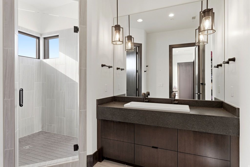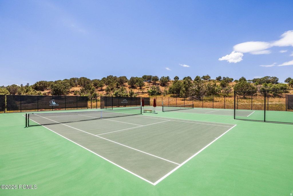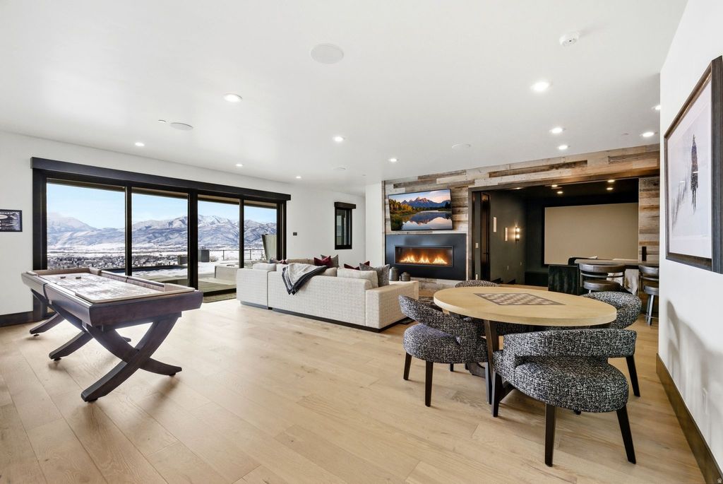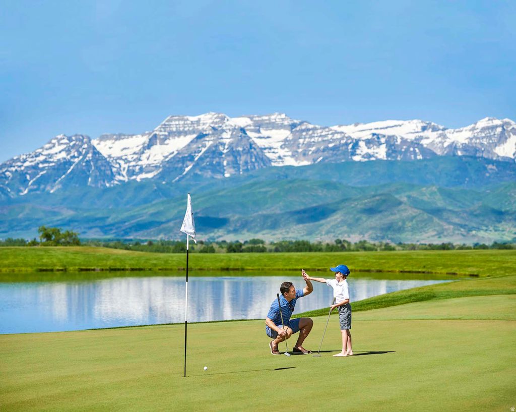 Experience elevated mountain living in this premier view estate within the Red Ledges prestigious lifestyle community, just 15 minutes from the new Deer Valley East Village. Spanning 6,707 square feet with 5 bedrooms and 7 baths, this stunning mountain retreat is perched atop one of the most sought-after ridgelines, capturing unsurpassed sweeping panoramic views of the Wasatch Mountain Range, Heber Valley, and Deer Creek Reservoir, while offering rare privacy backing to open space. Designed with an open-concept floor plan for both gathering and retreat, this elegant home features a private office, a gourmet kitchen with top-of-the-line appliances and custom cabinetry, a luxurious primary suite with a fireplace and private deck, four beautifully appointed en-suite bedrooms, high ceilings, and a modern great room with dramatic floor-to-ceiling sliding windows opening onto a grand vista deck for unparalleled, cinematic mountain views from sunrise to sunset. A deluxe home theater, expansive game room, and temperature-controlled wine cellar with a tasting room are ideal for both entertaining and personal retreat. Outdoor living rivals a private resort with a 40' lap pool spanning across the property, a professional-grade putting green, jacuzzi spa, fire pits, an outdoor kitchen, and multiple gathering areas, all framed by iconic mountain and valley views. A full smart home system, heated driveway, and oversized heated garage complete this truly unique and exceptional property. A full Red Ledges Golf Membership is available with the home, offering access to one of Utah's most distinguished private golf communities. Amenities include a Jack Nicklaus Signature Championship Golf Course, Golf Park, tennis, pickleball, swimming pools, fine dining, an award-winning fitness center, equestrian facilities, and an exclusive ski program featuring mountain Club access and seven-days-a-week shuttle service.