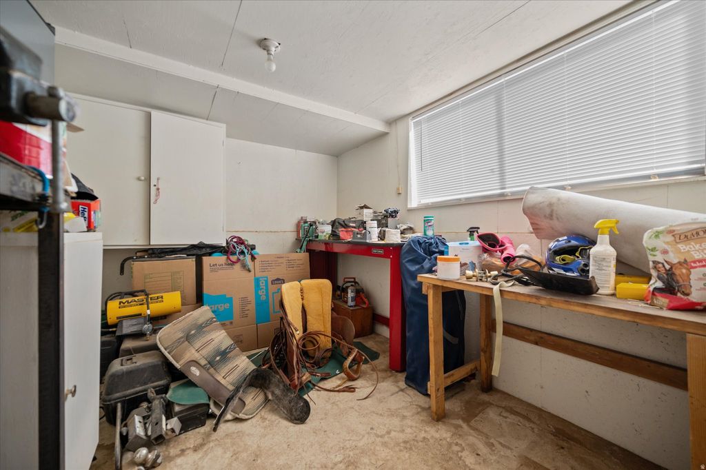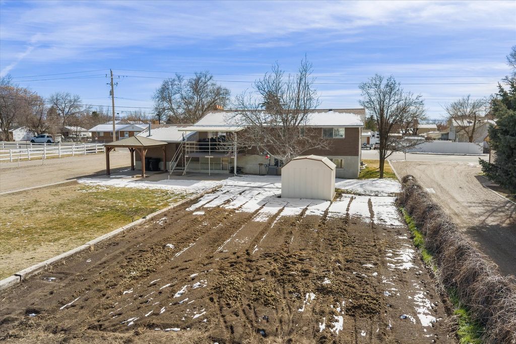 Exceptional Clinton horse property on .77 acres with outstanding equestrian facilities in a convenient location close to parks, schools, shopping, dining, entertainment, and Hill Air Force Base - plus access to high-speed fiber internet up to 1 Gig! This rare offering features a 4,536 sq ft barn complete with horse stalls, indoor riding arena, office space, power, two culinary water spigots, landline telephone connection, and secondary irrigation water outside. Seven animal stalls provide ample capacity for a horse or other livestock. Additional outbuildings include an impressive 1,600 sq ft covered metal structure with two-story clearance-ideal for hay storage, equipment, trailers, or additional covered parking. The solid brick home offers generous living space and is fully finished, providing room to spread out and grow. Enjoy outdoor living with a covered deck, covered patio, and a charming gazebo-perfect for relaxing or entertaining while overlooking your property. A basement entrance adds flexibility for guests, hobbies, or multi-generational living. The attached garage is equipped with its own furnace and thermostat, offering year-round comfort for projects or storage. A unique opportunity to own a versatile horse property with extensive improvements in a highly accessible Clinton location.