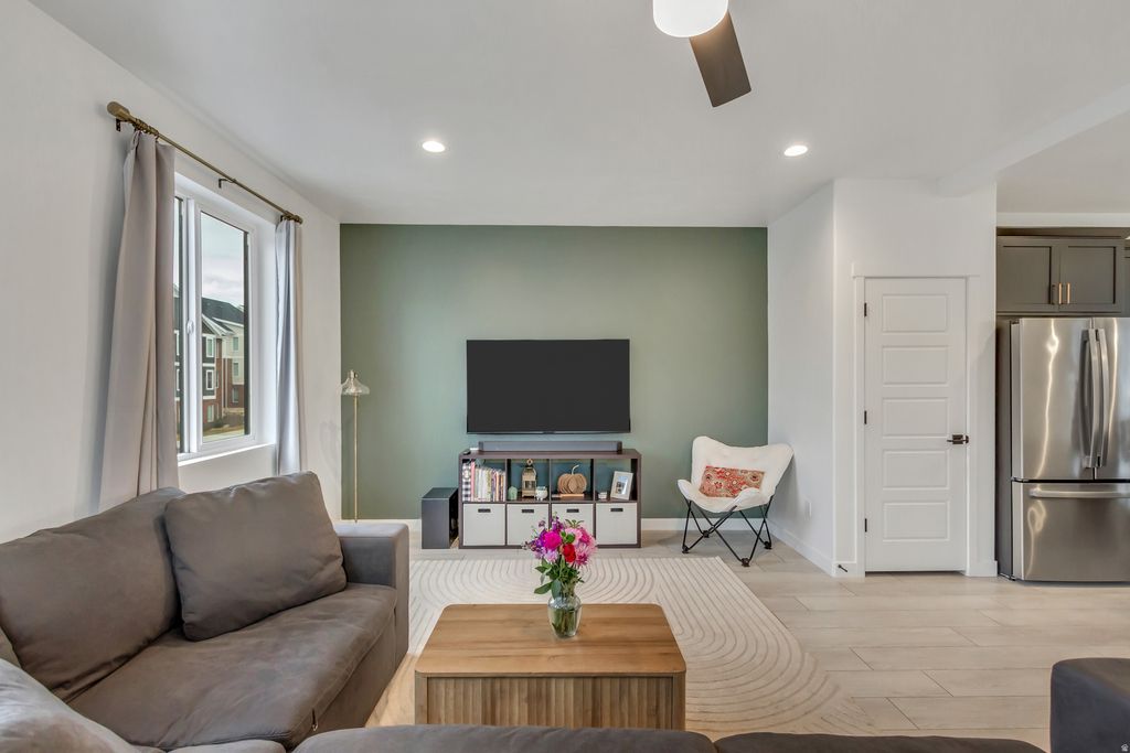Ideally located in American Fork, this end-unit townhome offers modern and convenient living at its finest. Featuring 4 bedrooms and 2.5 bathrooms, the home is filled with natural light and showcases a spacious open family room that flows seamlessly into the fully equipped kitchen with an oversized island and semi-formal dining area. Upstairs, you will find well-appointed bedrooms, a dedicated laundry area, and a primary suite complete with a walk-in closet and private en suite bathroom. Situated just minutes from freeway access, shopping, dining, and the growing Silicon Slopes market, the location offers both comfort and connectivity. The garage also includes a newly installed 330V outlet ready for your electric vehicle charger. This home offers true turnkey living with functionality and convenience throughout. Reach out today to schedule a private showing. Buyer/Buyer's Agent to verify all information.