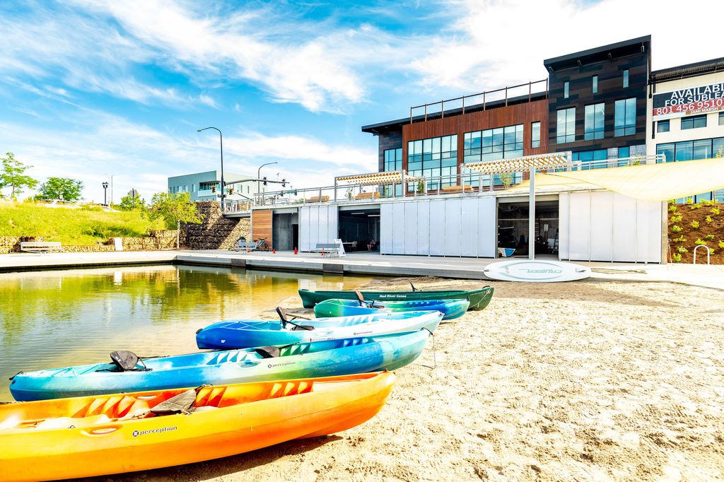April Move in!! Preferred Lender Incentive Interest Rate or Receive up to $15,000 towards closing costs!* BRAND-NEW Luxury Townhome in a COVETED DAYBREAK Location! Situated viewing Daybreak's newest attraction, The Watercourse, this stunning unit townhome offers unparalleled access to Lookout Park and The Cove-house. The expansive open floor plan showcases a gourmet kitchen with a spacious island. PLUS a custom built-in seating dinning nook. Go upstairs to find a cozy loft, 3 bedrooms, and a dedicated laundry room. The primary suite features a separate tub and shower, double vanity, walk-in closet, and a private covered balcony with breathtaking views. With direct water access, you can easily launch your paddle-board and embrace the peaceful waterfront lifestyle. Plus, with a 2-year builder warranty and a 10-year structural warranty, you'll enjoy lasting quality and peace of mind for years to come! Daybreak amenities include: Pools, Gym, Parks, Trails, Downtown Daybreak, Salt Lake Bees Stadium, Trax, Restaurants & More! Buyer and buyers agent to verify all information. Model Home address: 6637 W Lake Ave, South Jordan UT