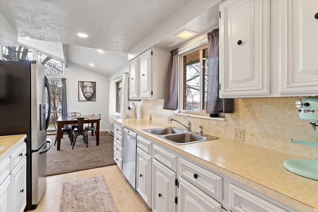 Welcome to this charming 3-bedroom, 2-bathroom home located in Brigham City! Step inside to discover soaring vaulted ceilings with stylish beams that create an open, airy feel throughout the main living space. The home features two cozy gas fireplaces, perfect for relaxing evenings or gathering with family and friends. Enjoy the benefits of a tankless water heater for endless hot water and new energy-efficient windows that enhance both comfort and efficiency. Outside, you'll find a large driveway with plenty of space for multiple vehicles, guests, or recreational toys. The backyard is fully fenced for your family pet and a patio for those bbq dinners with family and friends.