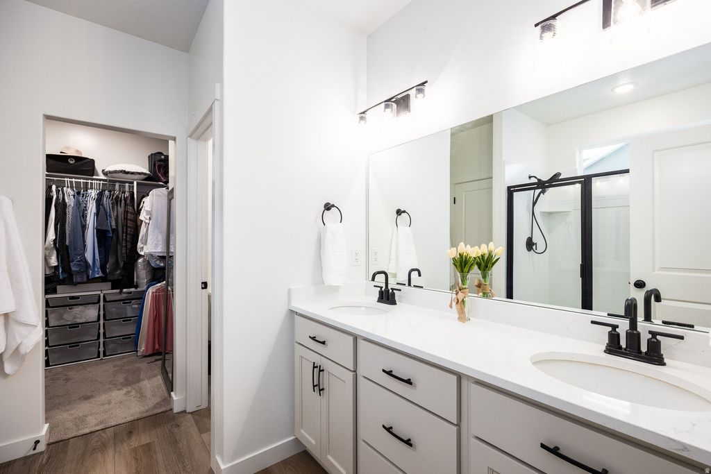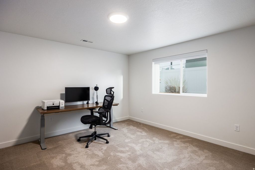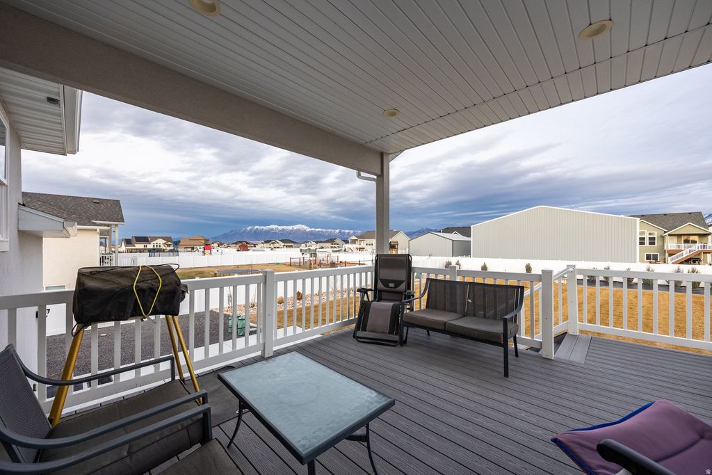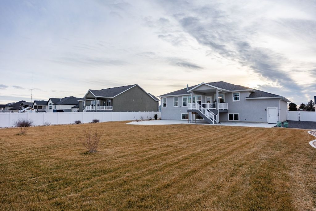 Located in a quiet Hooper neighborhood with convenient access to Ogden and Salt Lake City, this 2023-built 6-bedroom home offers modern construction, flexible living space, and room to grow. Designed with both everyday living and entertaining in mind, the home features an open-concept living and dining area that creates a natural gathering place for family and friends. The kitchen offers abundant cabinetry, a walk-in pantry, and easy access to the mudroom and laundry area with space for a second refrigerator. The main level includes a primary suite with a walk-in closet and oversized shower, along with two additional bedrooms and a full hallway bathroom. Downstairs, a spacious second living area provides endless possibilities-perfect for movie nights, a game room, or an at-home gym. Three additional bedrooms, a full bathroom, and cold storage add flexibility for guests, hobbies, or multi-generational living. The fully fenced backyard is designed for both relaxation and entertaining, featuring a custom concrete patio, full irrigation, and fruit bushes along the garden perimeter. Outdoor enthusiasts will appreciate being less than a mile from the nearby Ogden Bay Waterfowl Management Area, known for scenic walking paths, bird watching, and duck hunting. At night, Hooper's wide-open skies offer stunning views of stars and constellations rarely seen closer to the city.