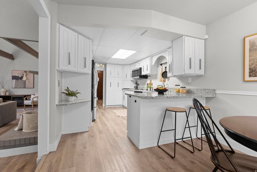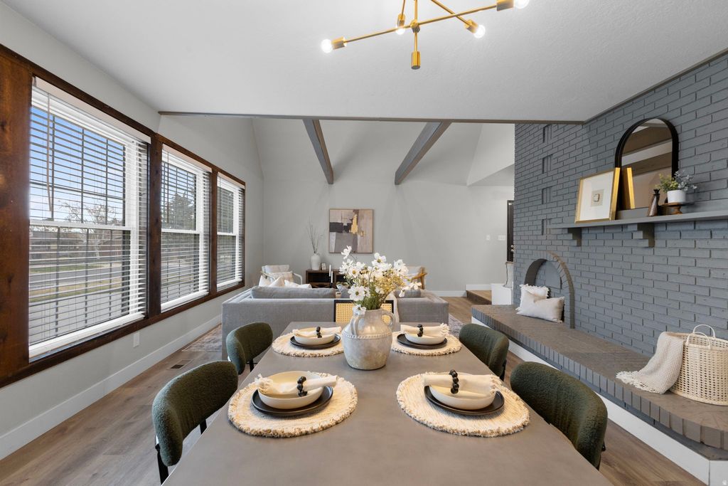 Beautifully updated 4-bedroom, 2-bath home situated on nearly half an acre with mature trees and plenty of outdoor space. The spacious primary suite features a private balcony, walk-in closet, and a mini split heating and cooling system for independent temperature control. The primary bathroom offers double sinks, a soaking tub, and a separate cultured marble shower. The home offers new windows and a functional layout with two bedrooms on the upper level and two on the main floor, along with a full bathroom on each level. The updated kitchen includes white painted cabinets, stainless steel appliances, modern hardware, and granite countertops. The large family and dining area is highlighted by painted brick accents and exposed beams, creating a warm and inviting gathering space. A unique property with thoughtful updates, character, and plenty of space to enjoy.